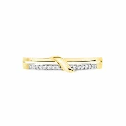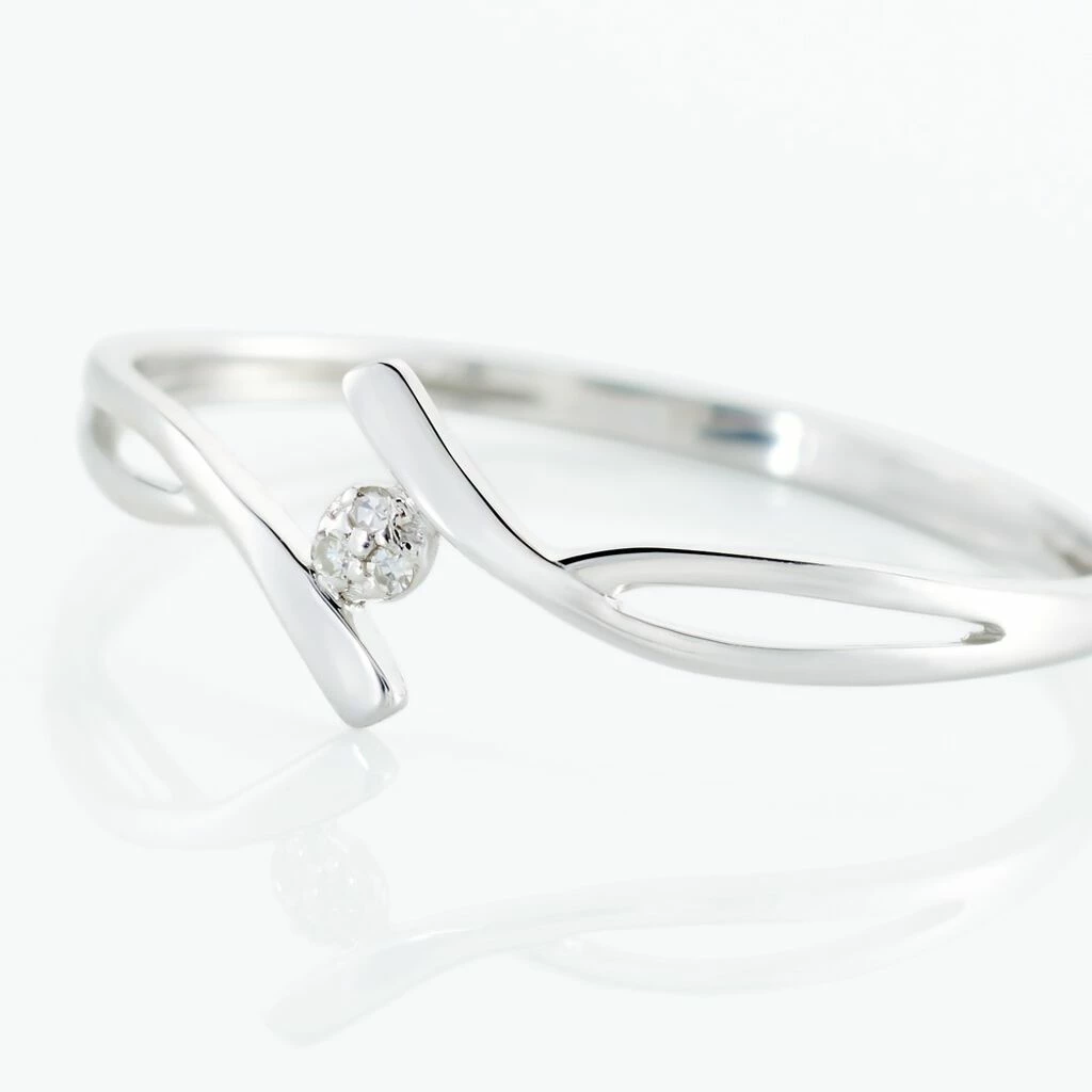 Bague Or Blanc 375/1000 Forme Vague Pavage Diamants