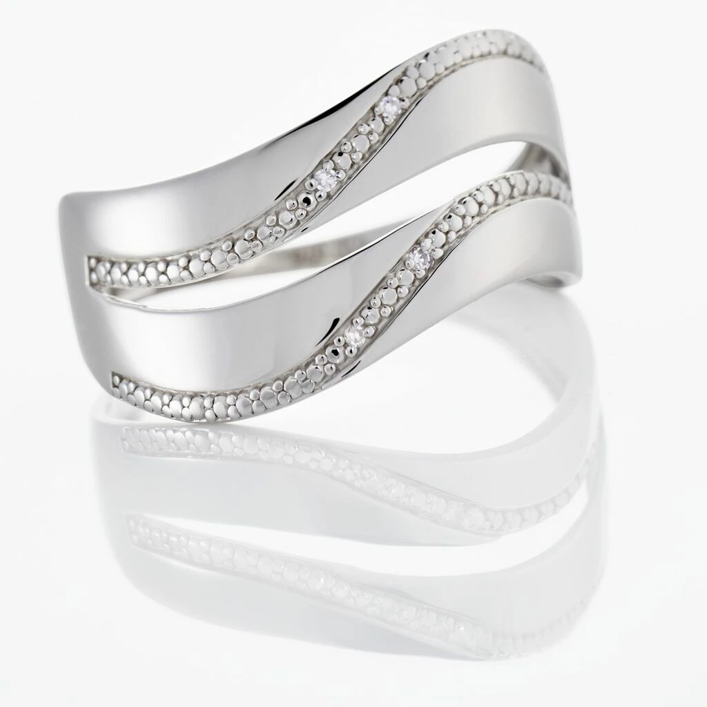 Bague Or Blanc 375/1000 Forme Vagues Diamants