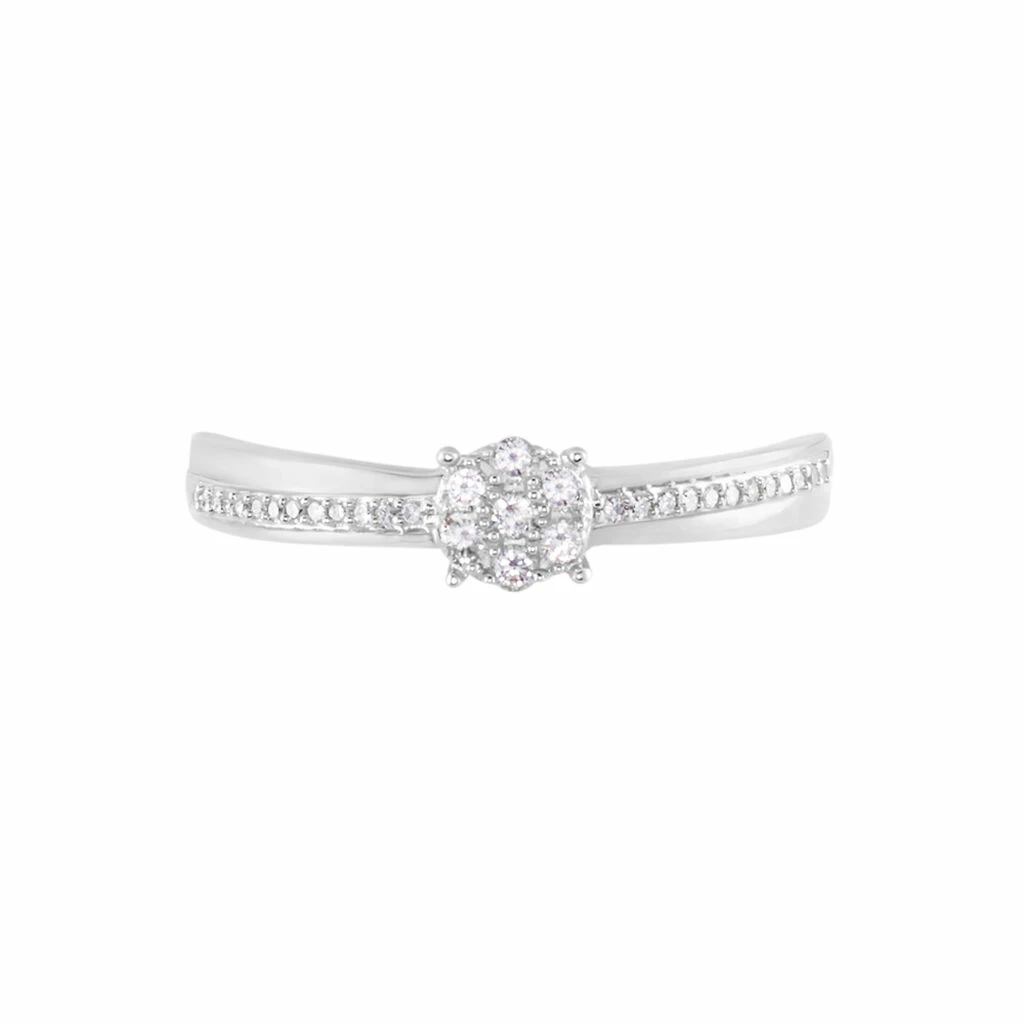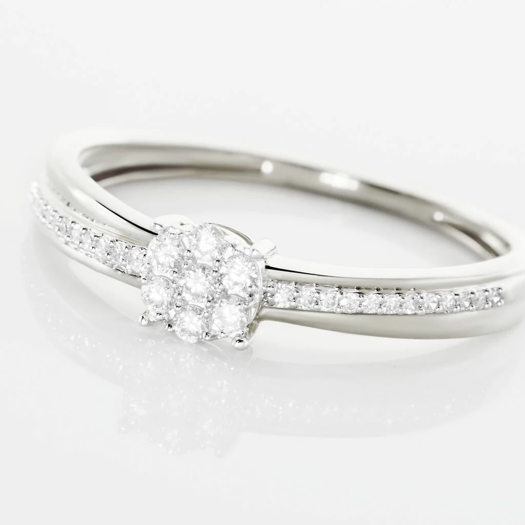 Bague Or Blanc 375/1000 Multipierre Accompagne Vrille Pavage Diamants