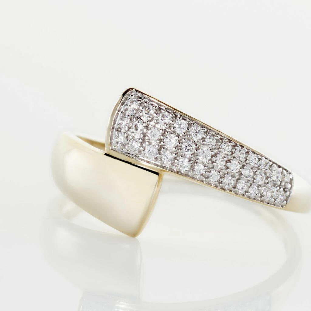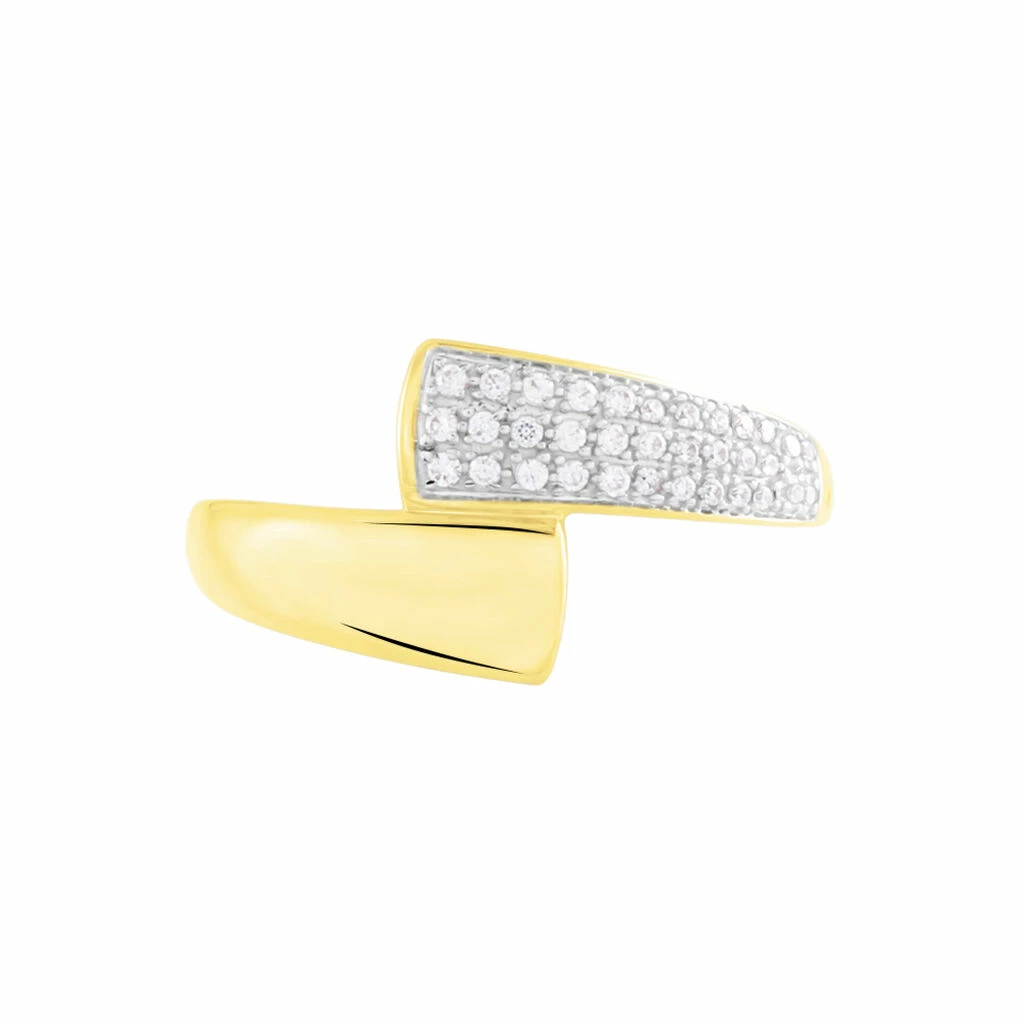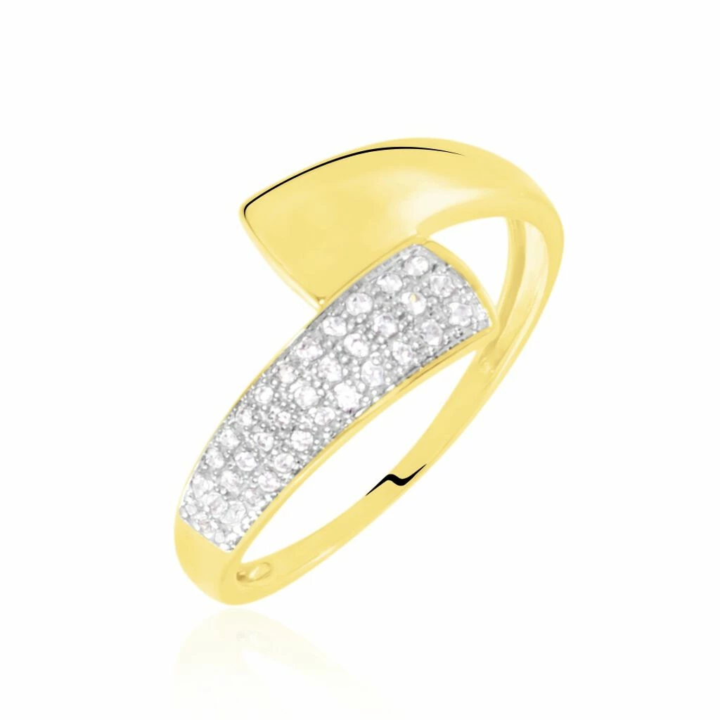 Bague Or Jaune 375/1000 Pavage Oxydes De Zirconium Croise
