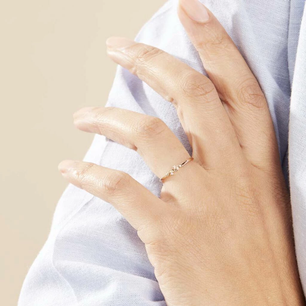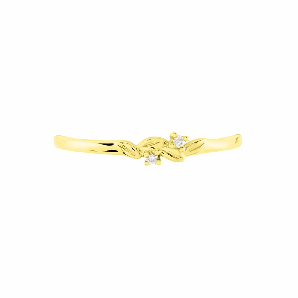 Bague Or Jaune 375/1000 Forme Feuillage Pavage Diamants