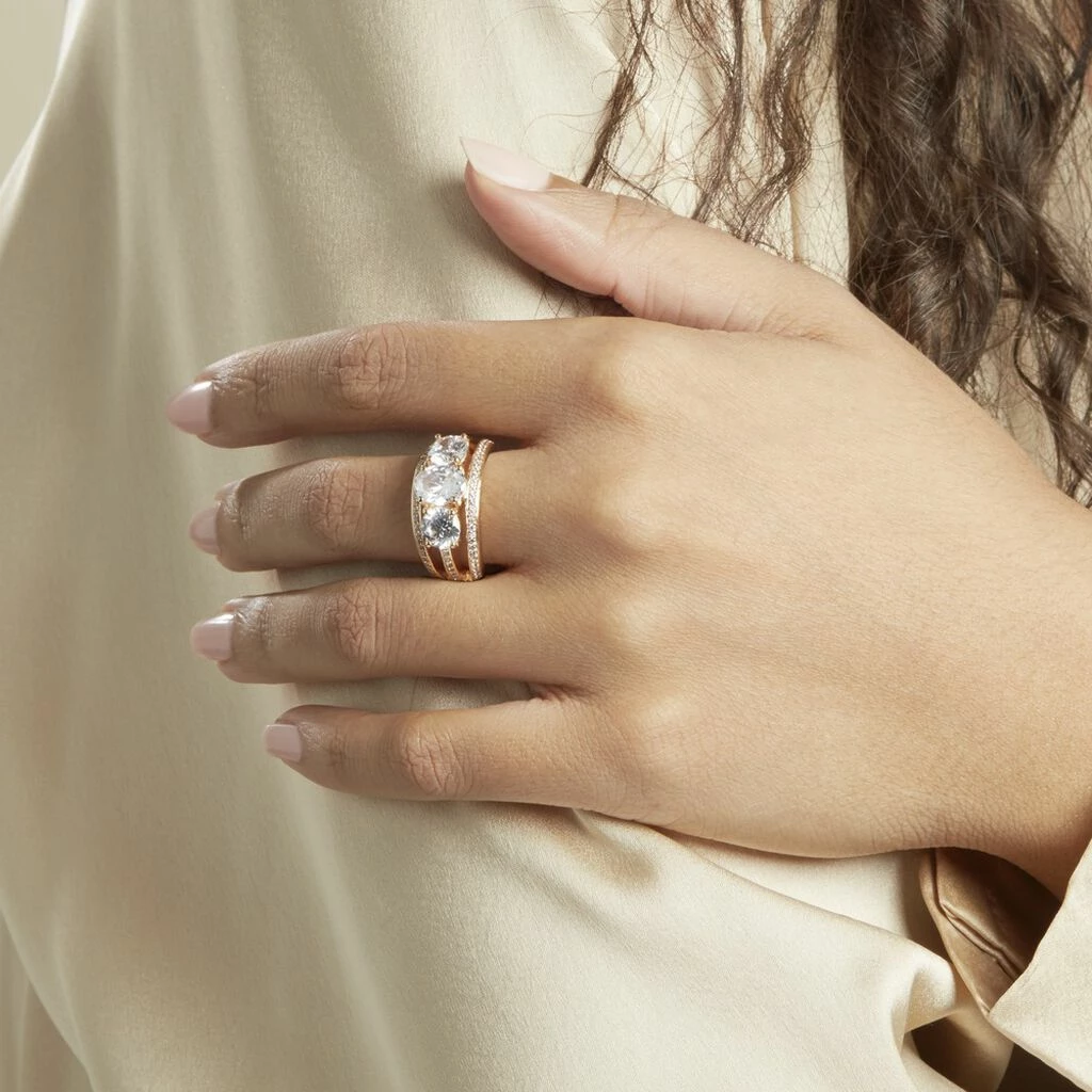 Bague Plaqué Or Jaune Trilogie Oxydes De Zirconium