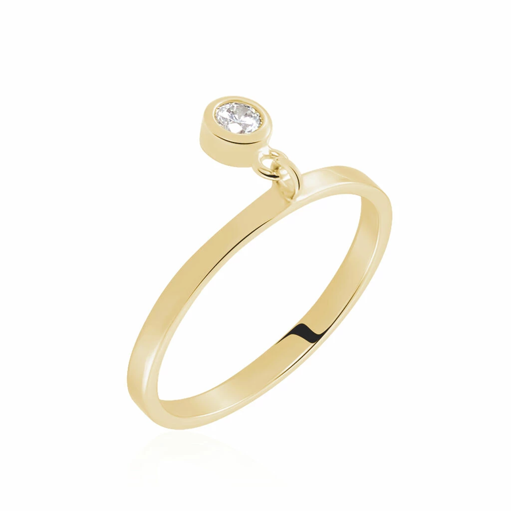 Bague Plaque Or Jaune Pampille Oxyde De Zirconium Serti Clos