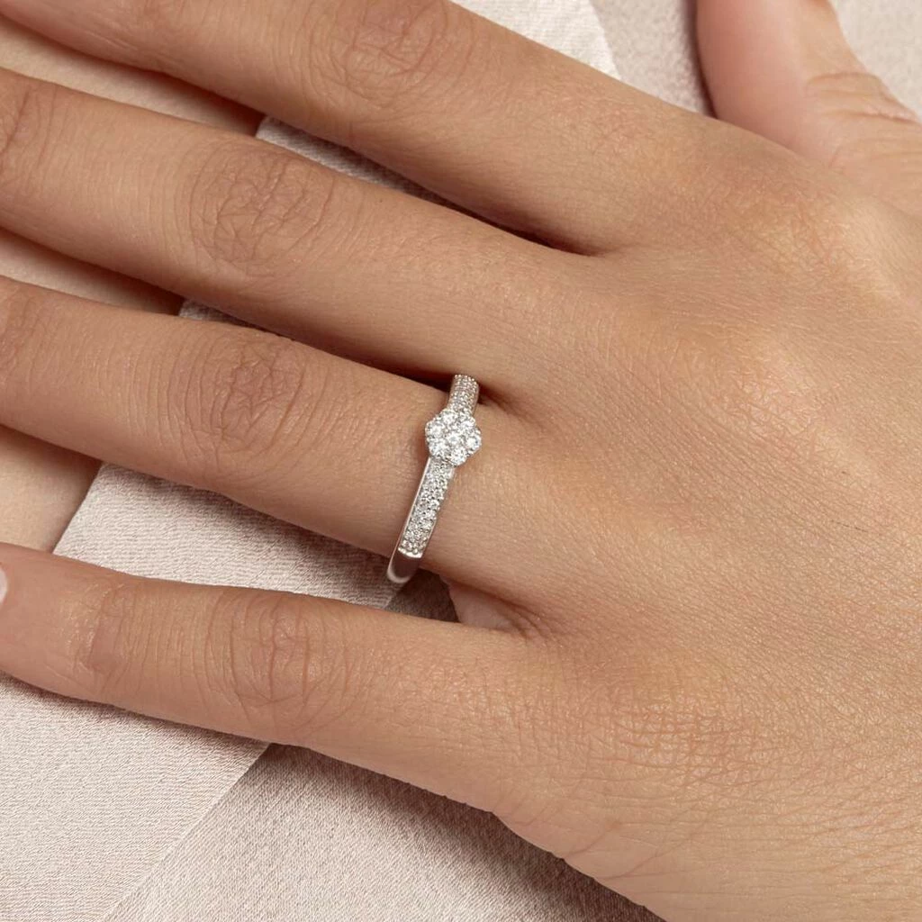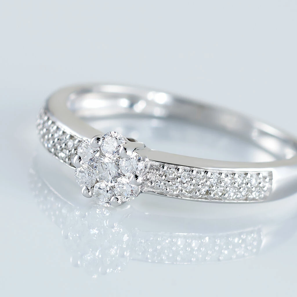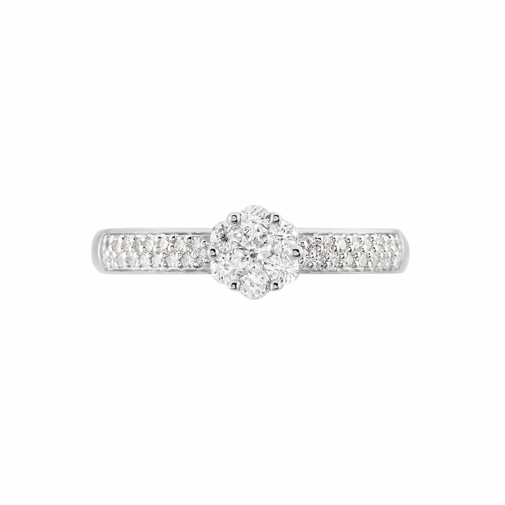 Bague Or Blanc 375/1000 Diamants Multi Pierre Effet Chou Central Corps De Bague Pave Diamants 0.25cts