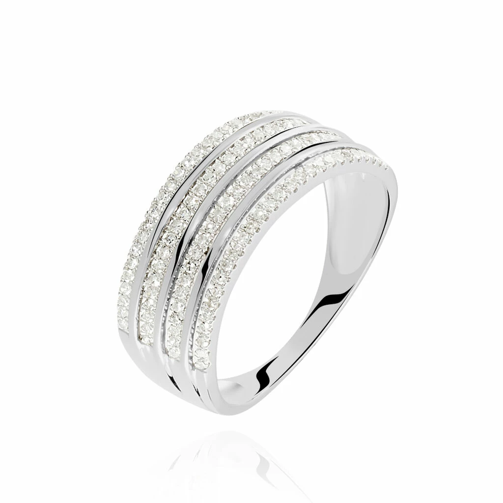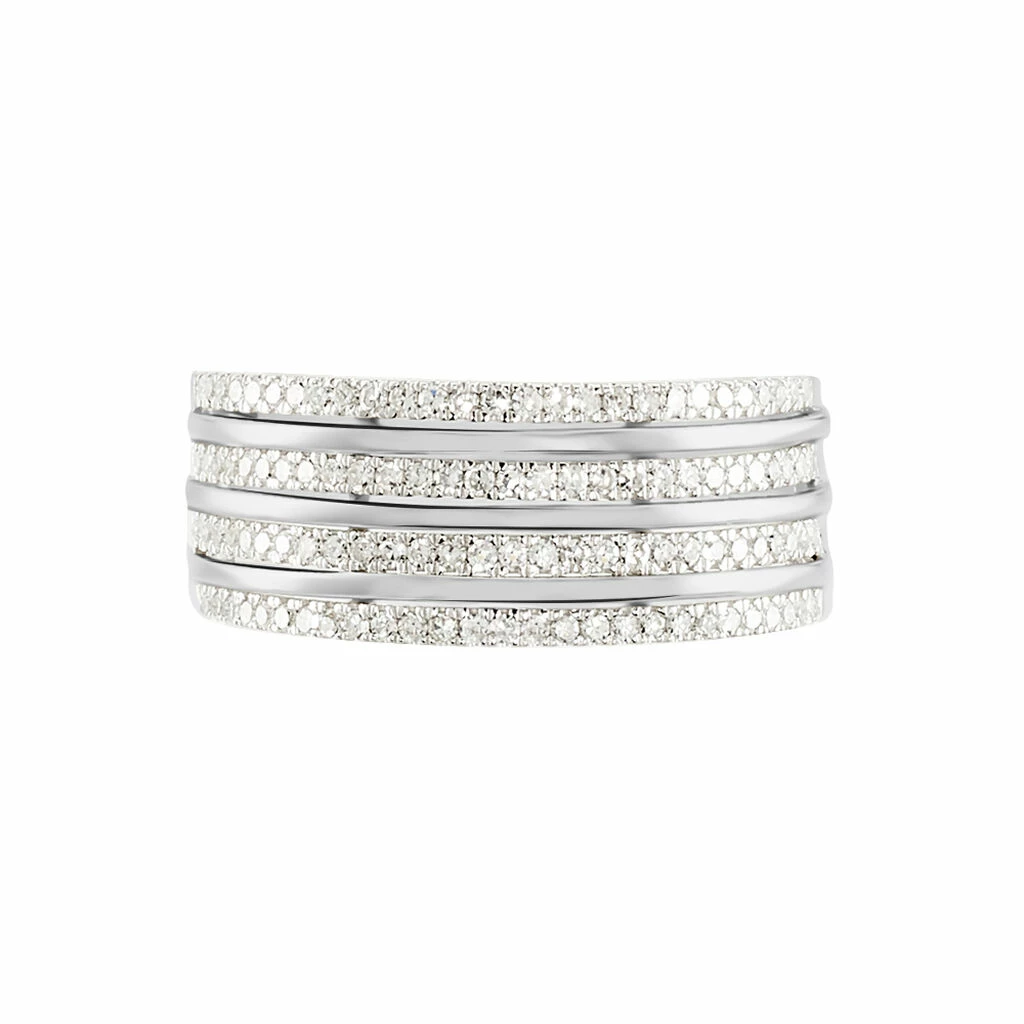 Bague Or Blanc 375/1000 4 Rangs Pavage Diamants
