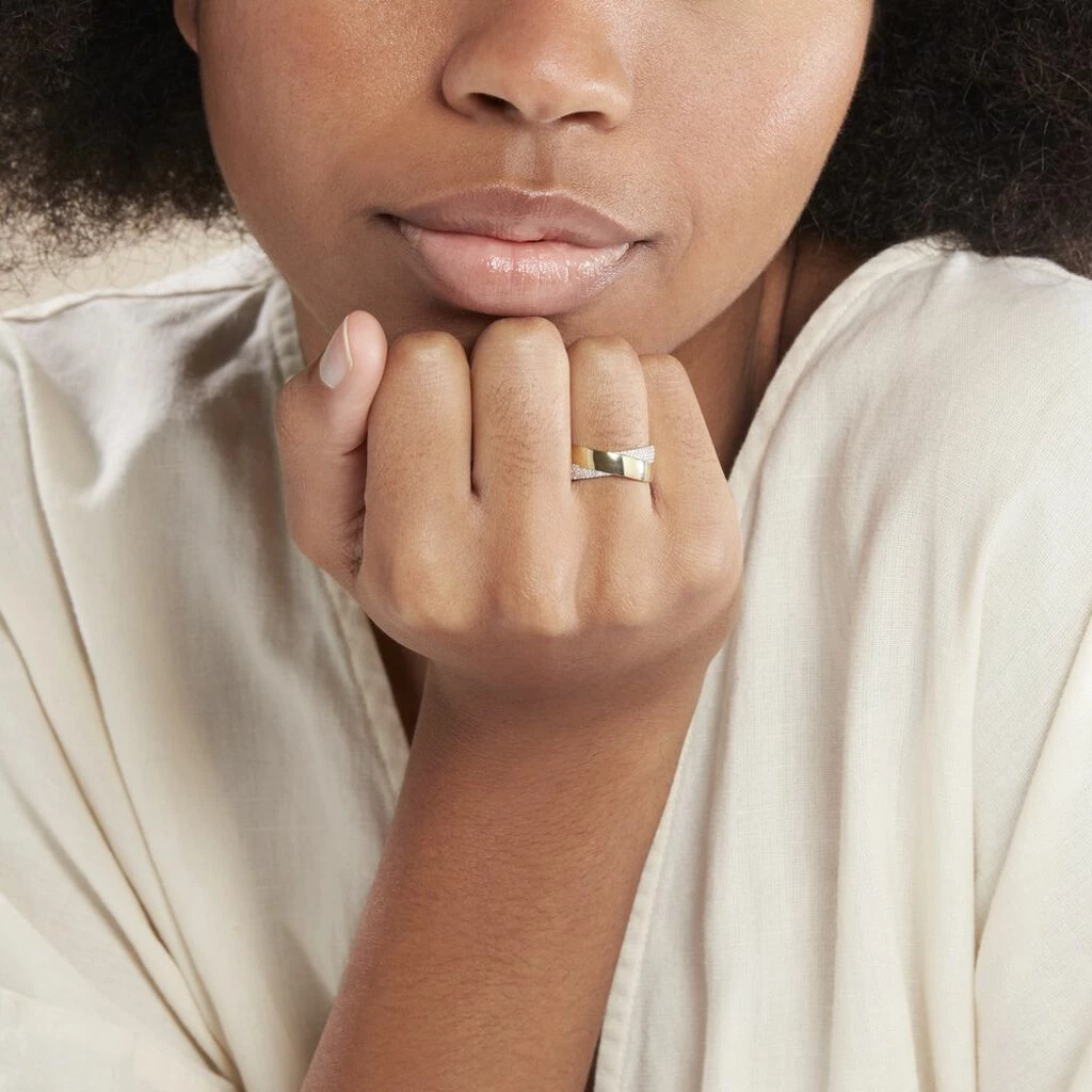 Bague Or Bicolore 375/1000 Croisée Semi Pavage Diamants