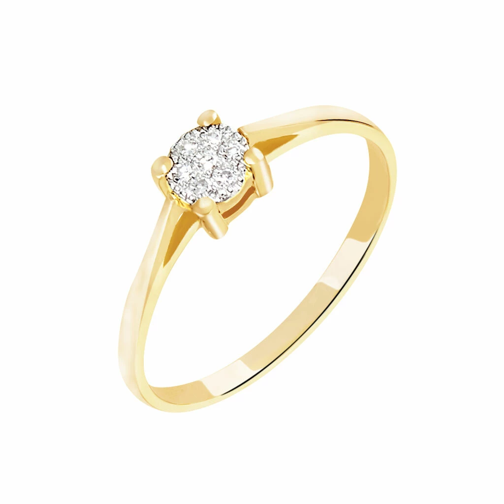 Bague Or Jaune 375/1000 Diamants 0.035cts Central Multi Pierre Effet Pavage