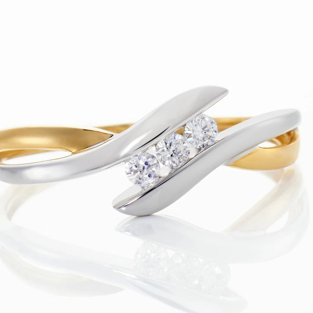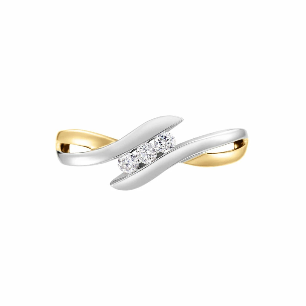 Bague Or Bicolore 375/1000 Trilogie Diamants 0.11cts