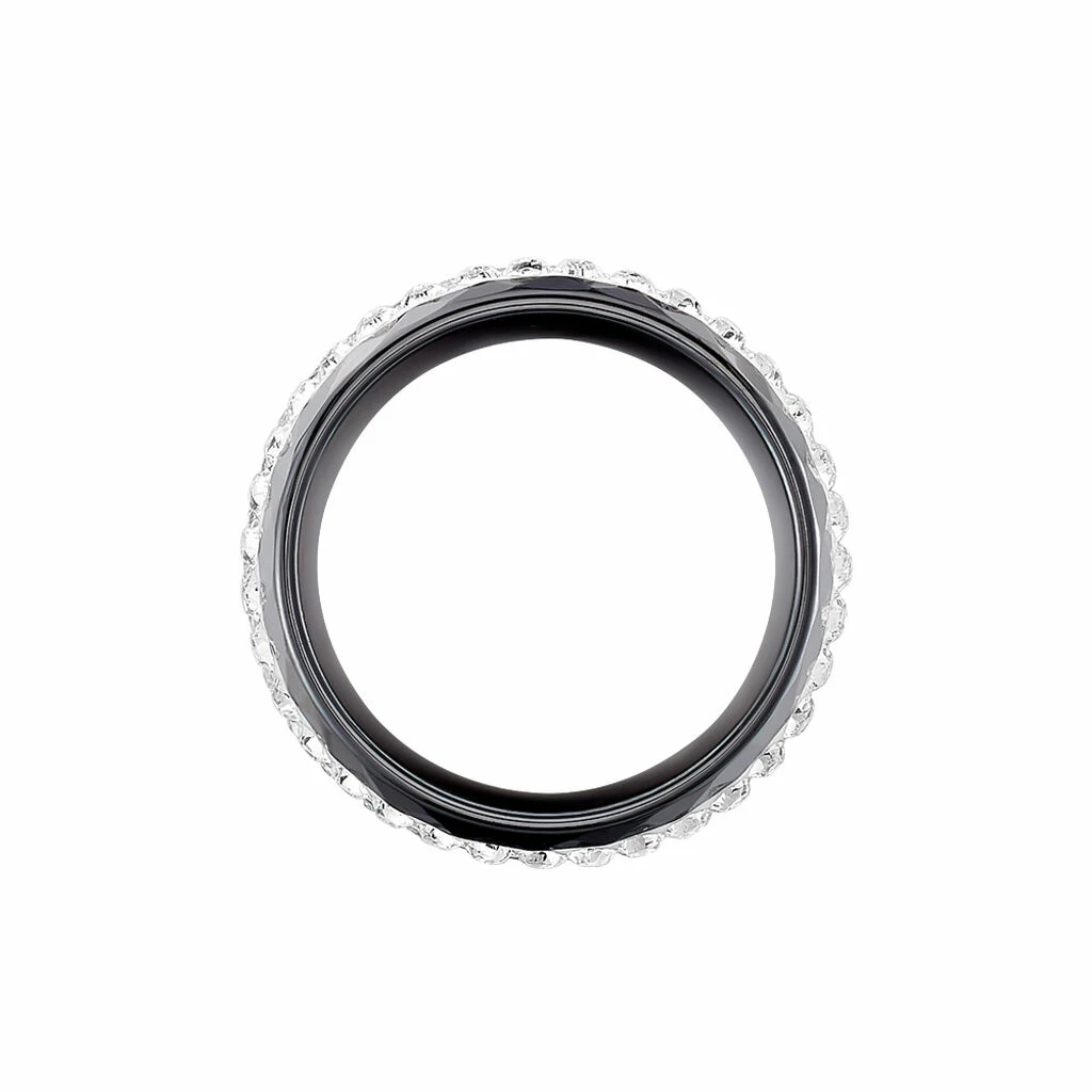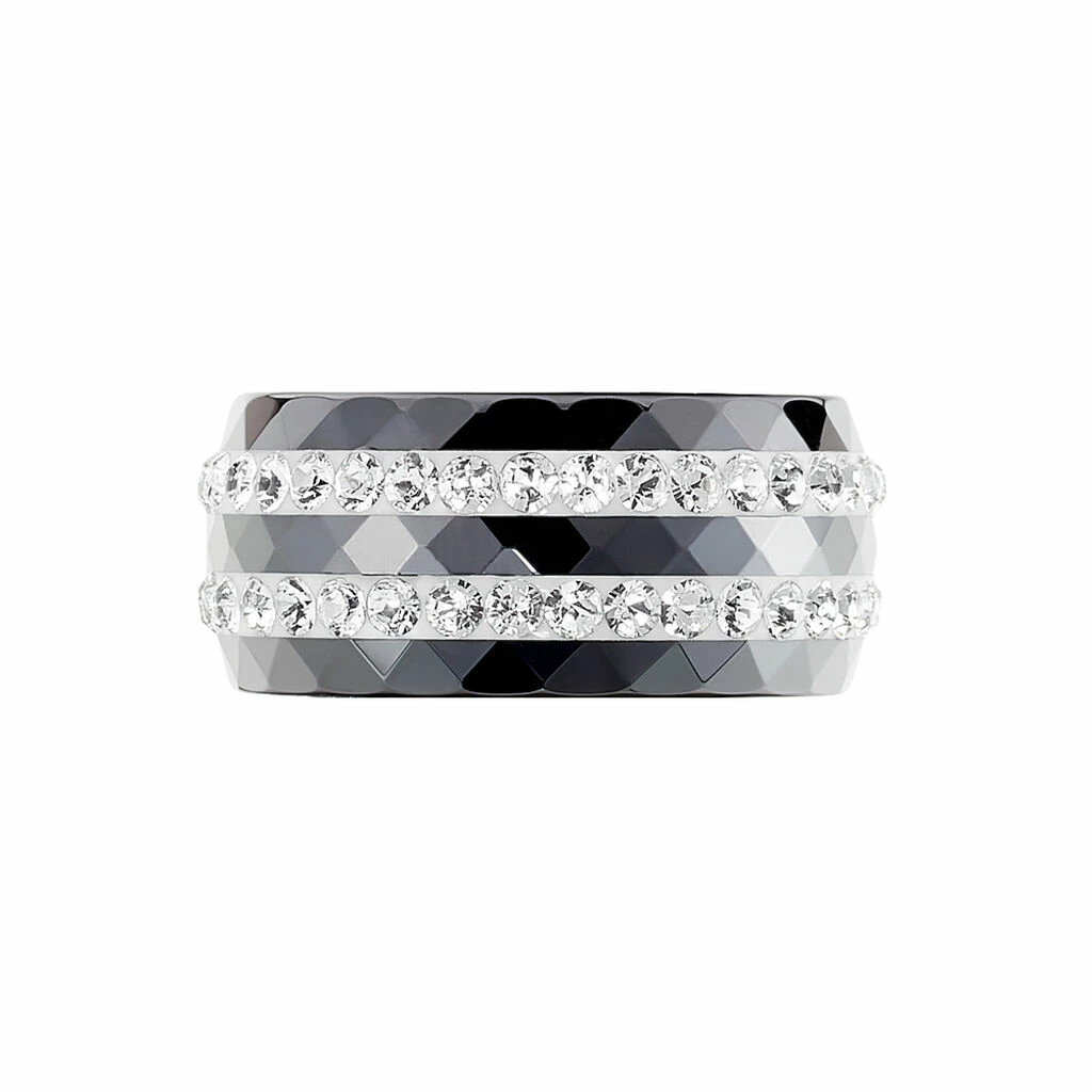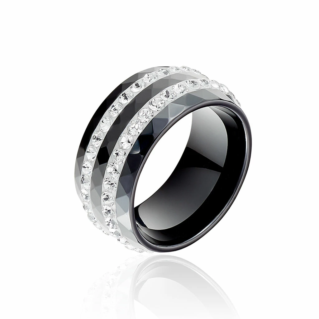 Bague Céramique Noire Et Strass