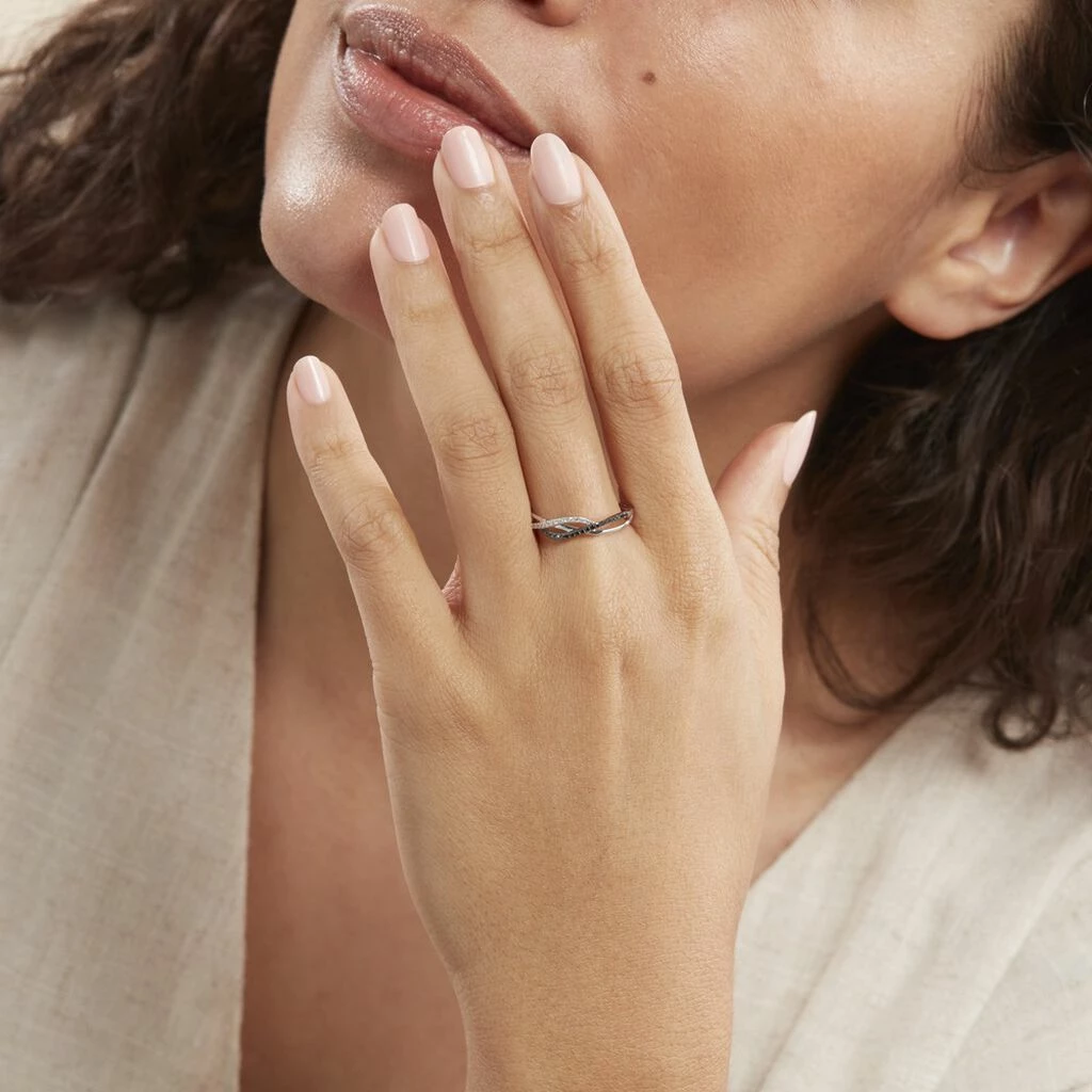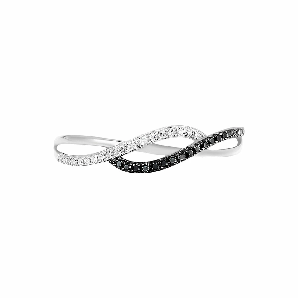 Bague Or Blanc 375/1000 Forme Double Vague Diamants Blancs Et Noirs