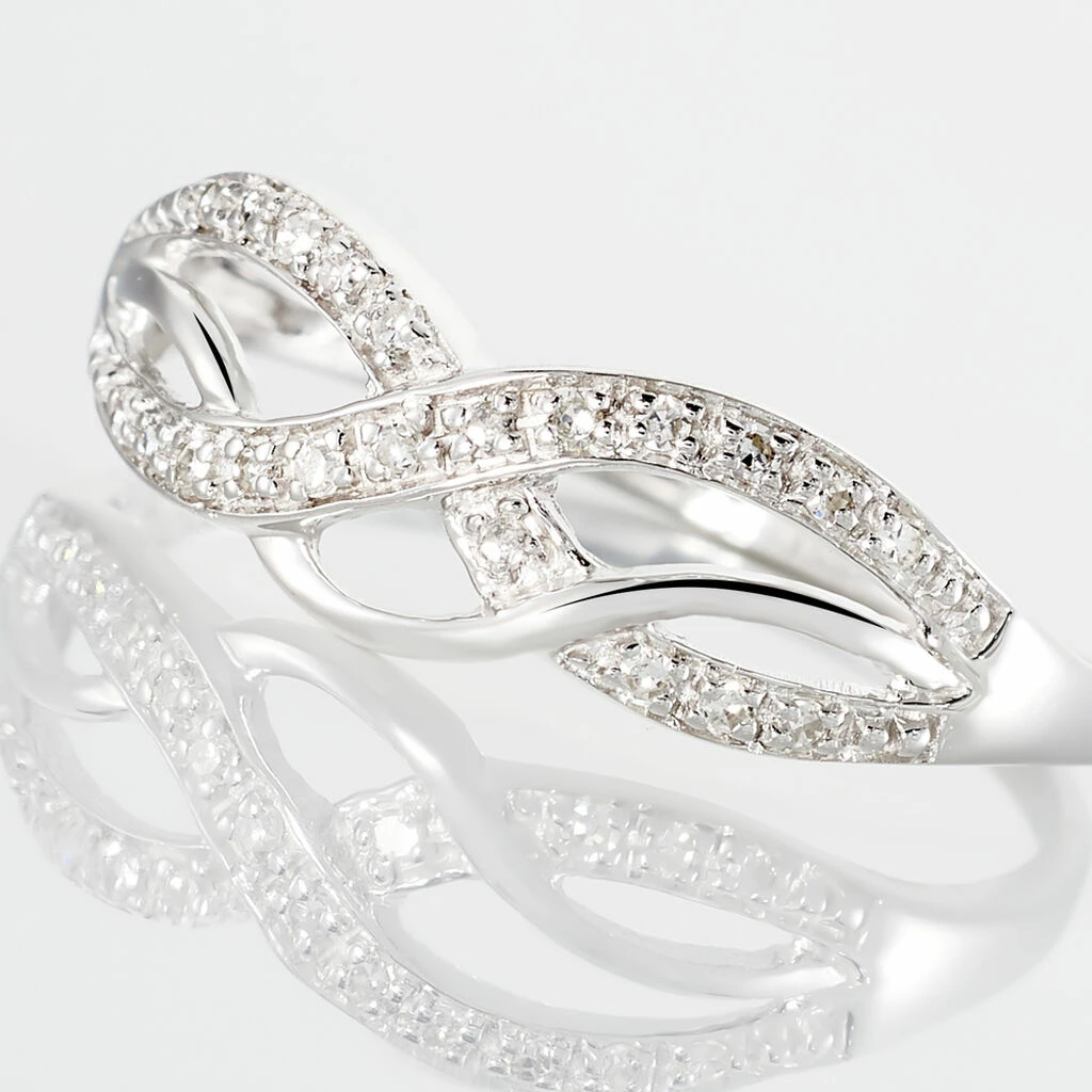 Bague Or Blanc 375/1000 Vaguelettes Diamants