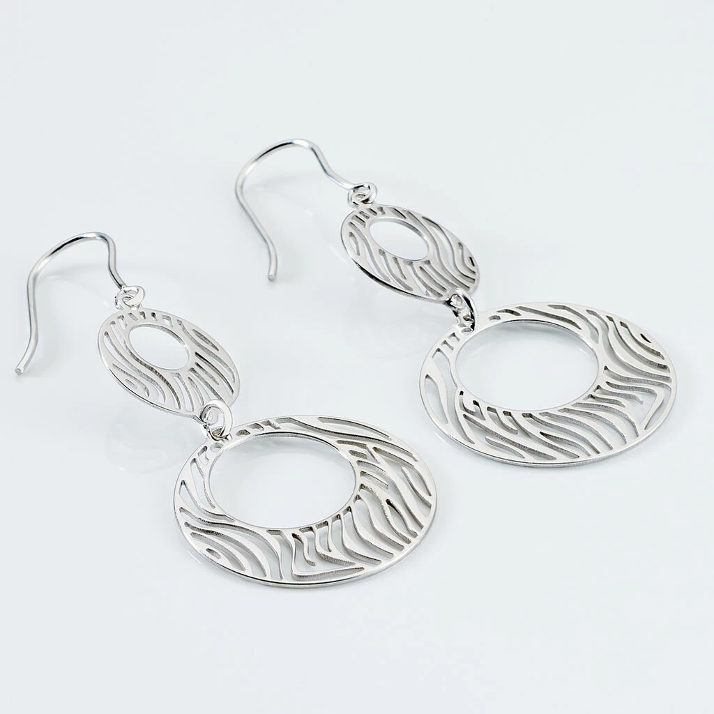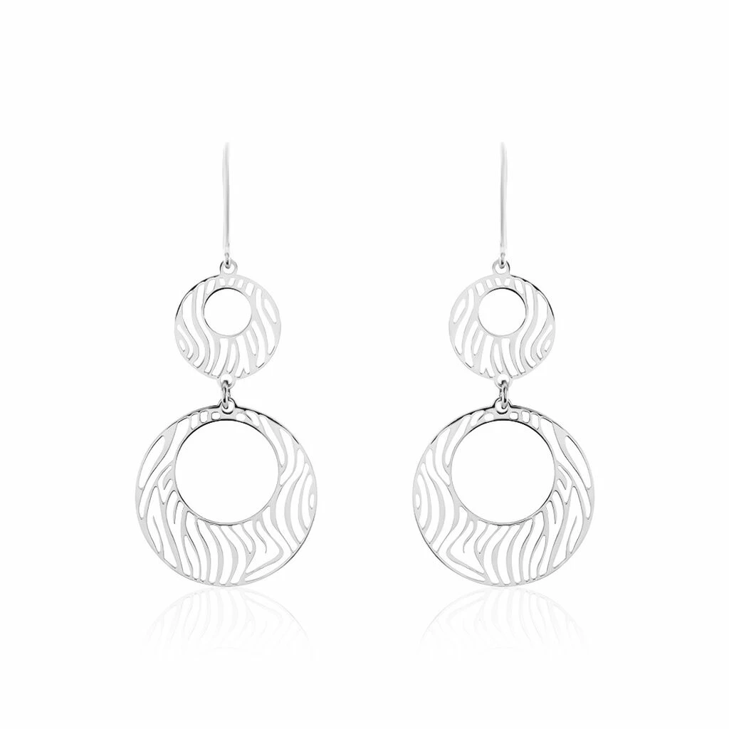 Boucles D’oreilles Pendantes Argent Blanc 925/1000 Cercles Motifs Zebres