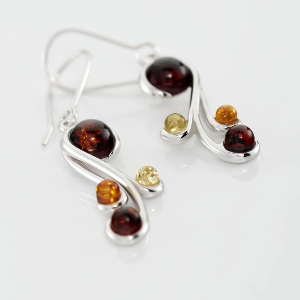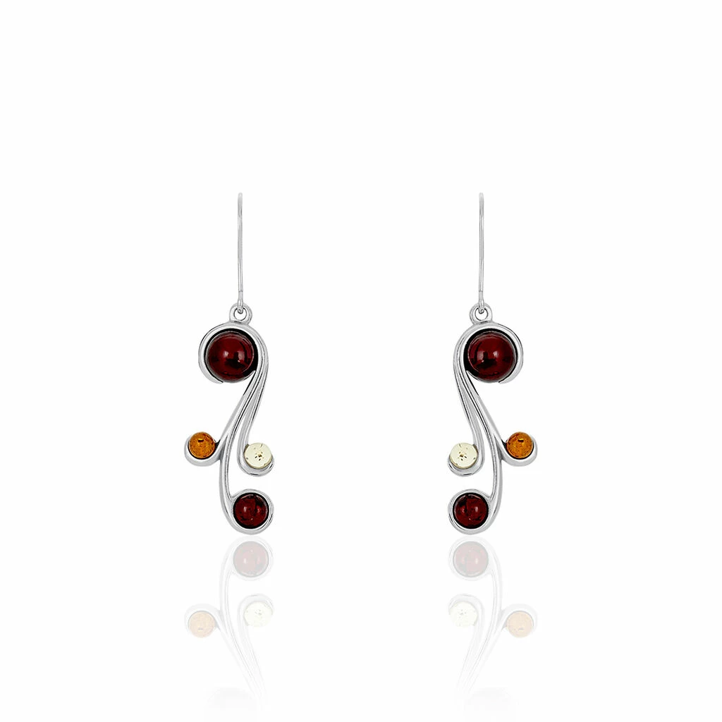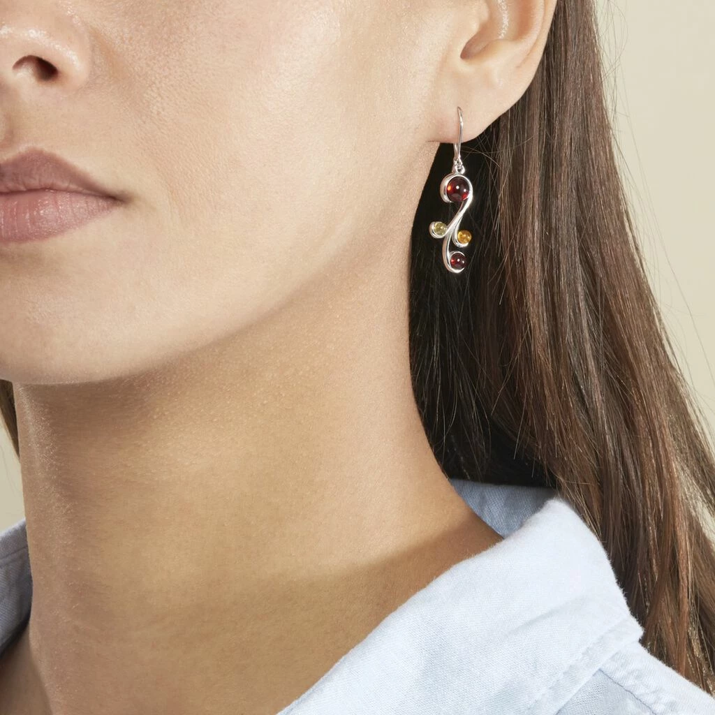 Boucles D’oreilles Argent Blanc 925/1000 Ambres Multicolores