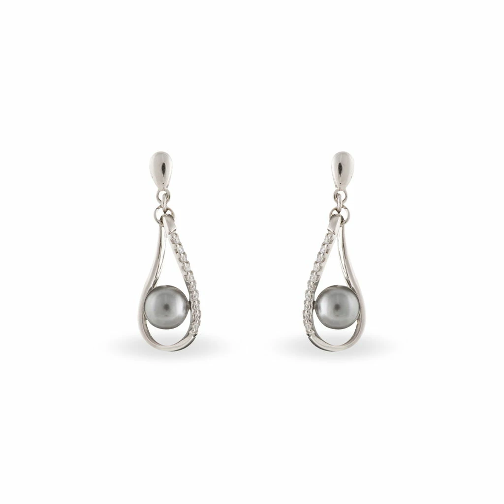 Boucles D’oreilles Pendantes Alexya Argent Perle D’imitation Et Oxyde