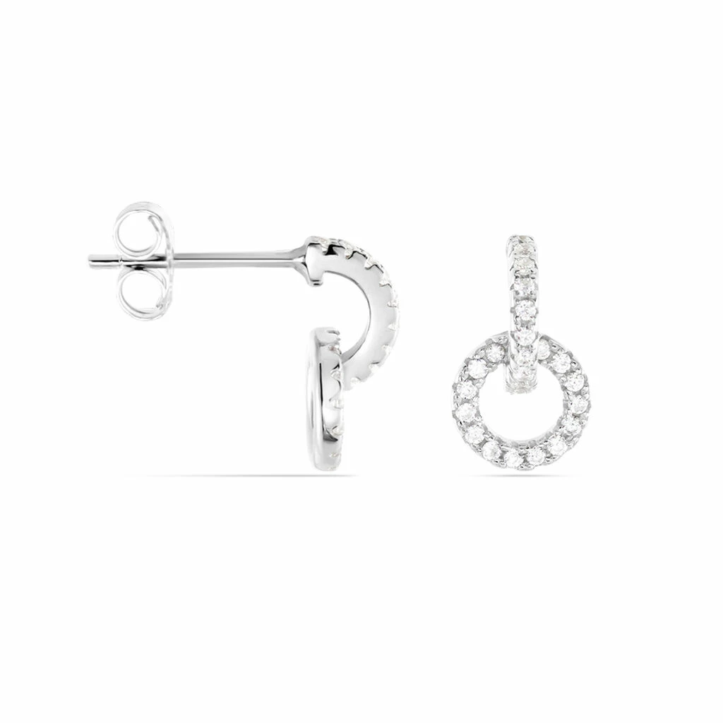 Boucles D’oreilles Pendantes Argent 925/1000 Cercle Ajouré Oxyde De Zirconium