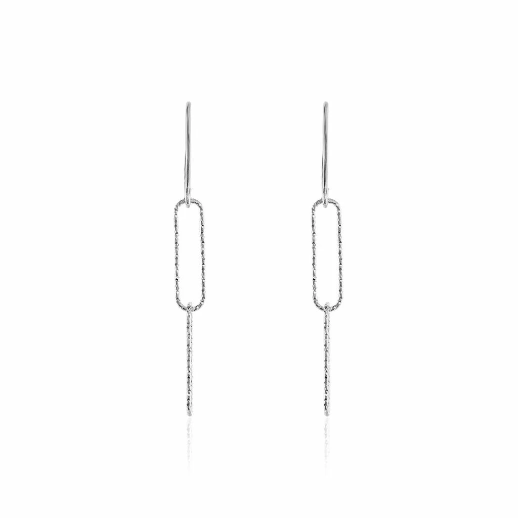 Boucles D’oreilles Pendantes Argent 925/1000 Maillons Effet Diamanté