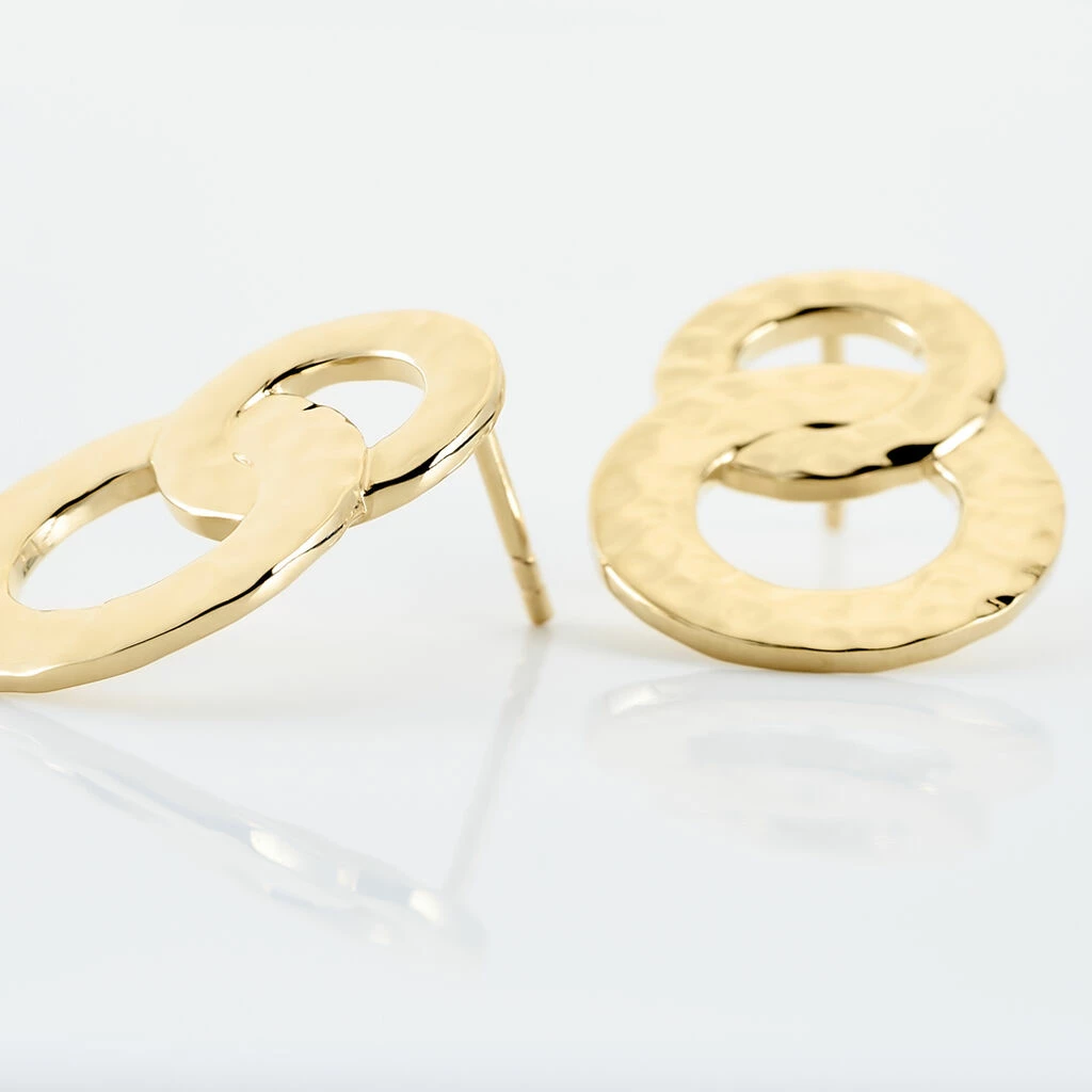 Boucles D’oreilles Plaqué Or Jaune Double Cercles Ajoures Effet Martele