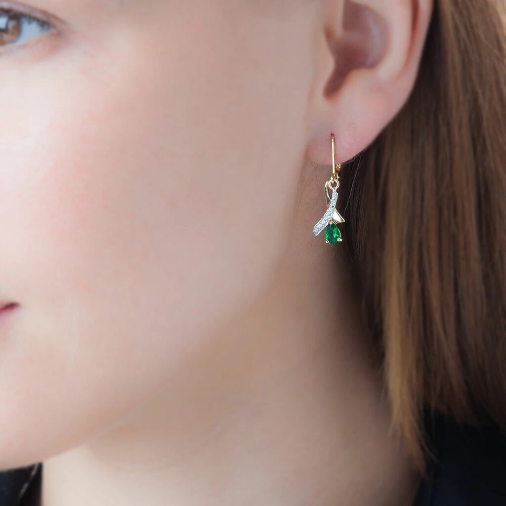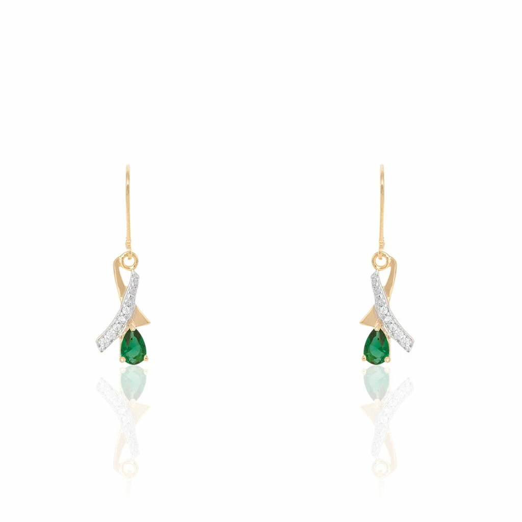 Boucles D’oreilles PlaquĂ© Or Pierres Vertes Et Oxydes De Zirconium