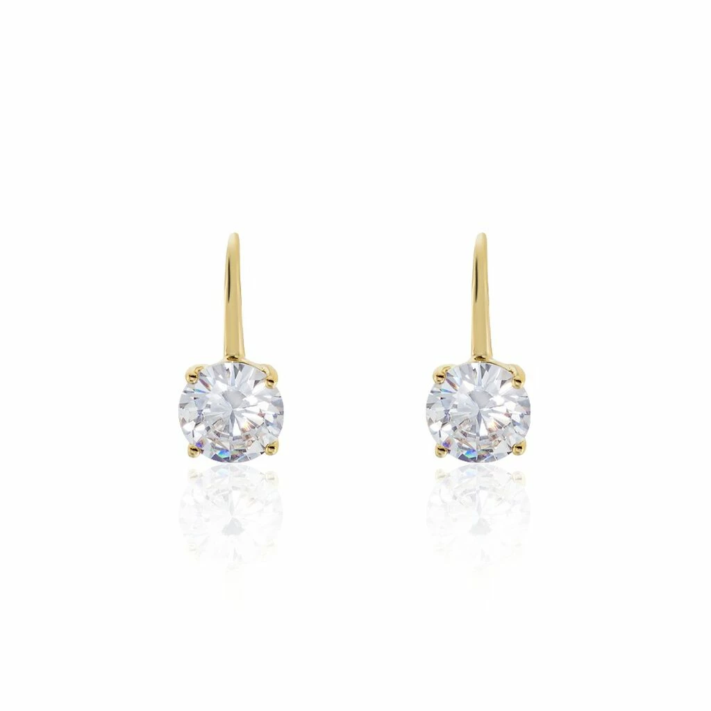 Boucles D’oreilles Pendantes Plaque Or Jaune Dormeuses Serti Griffes Oxydes De Zirconium