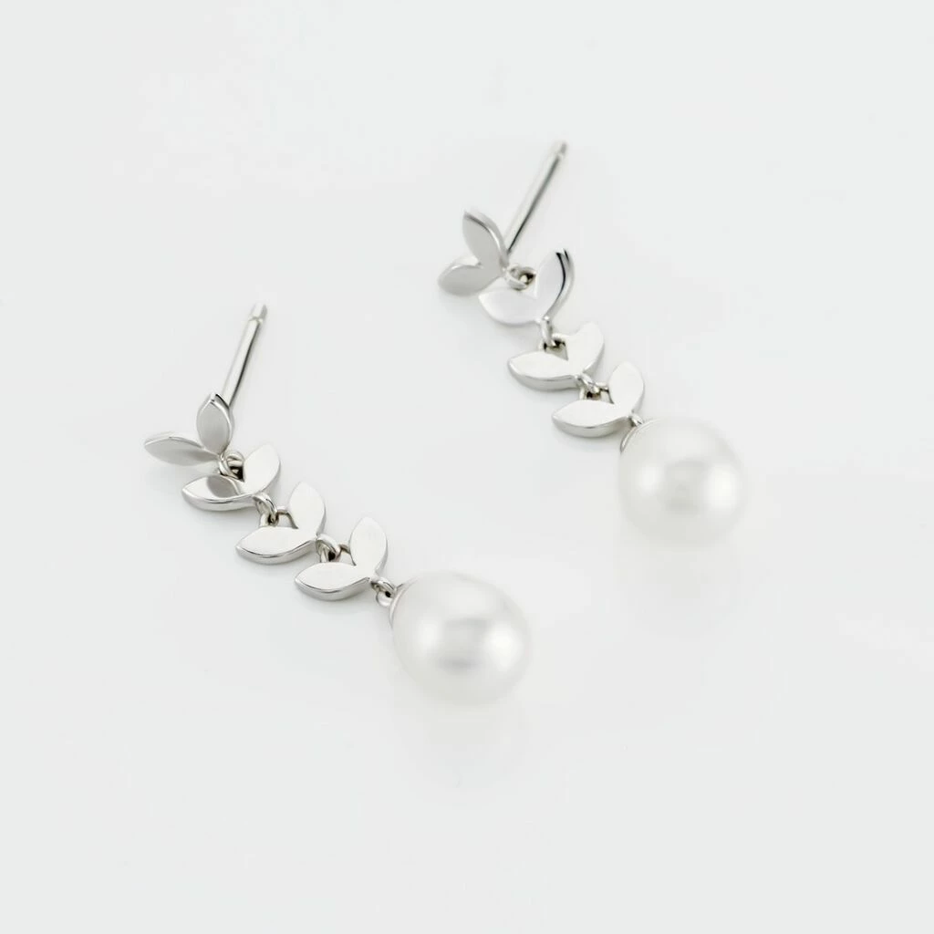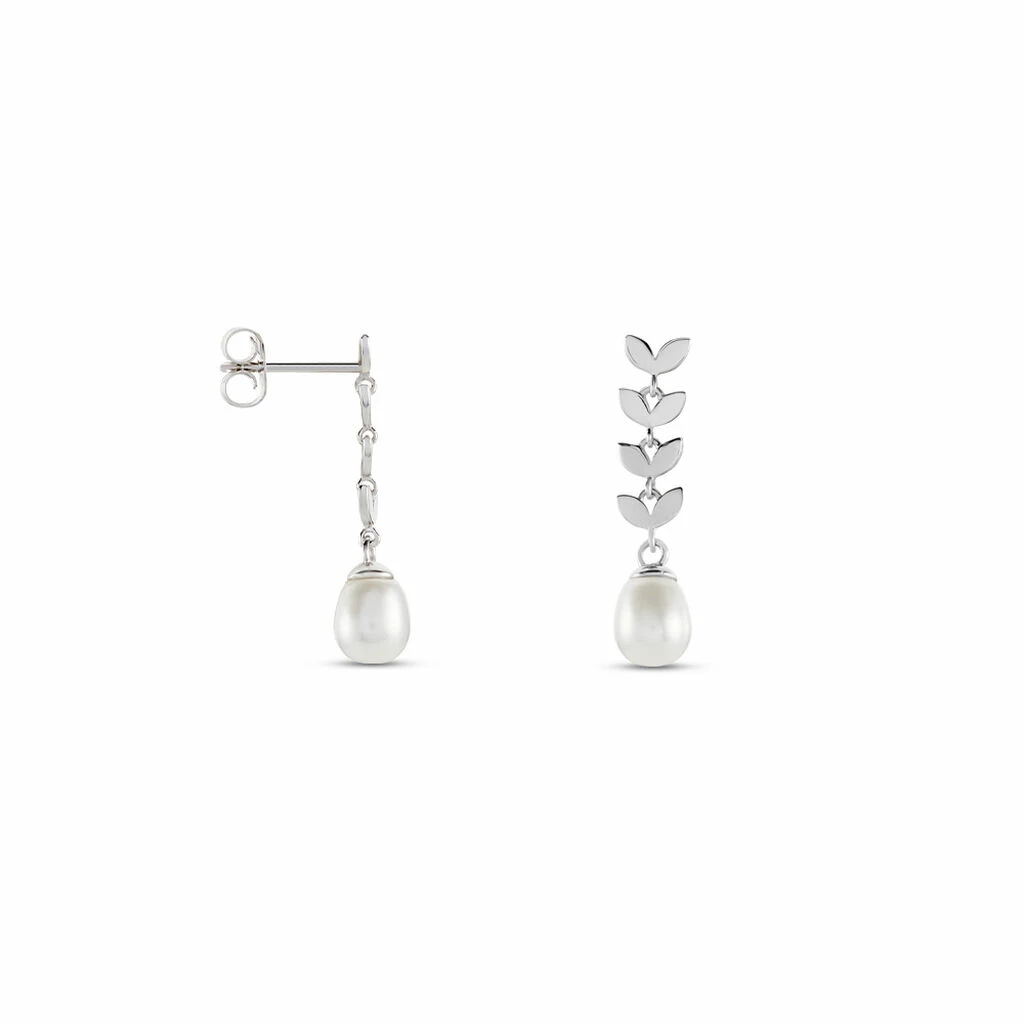 Boucles D’oreilles Pendantes Argent 925/1000 Perle De Culture Et Feuilles ArticulĂ©es