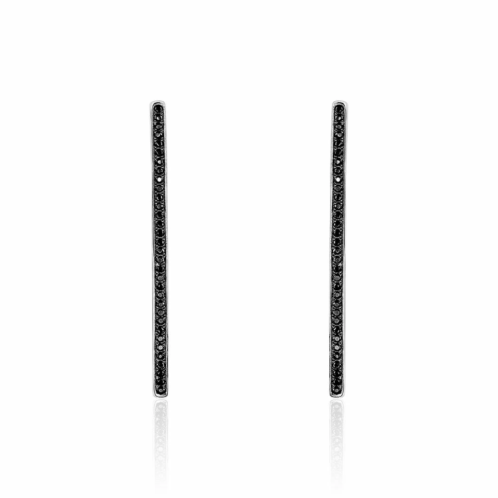 Boucles D’oreilles Argent 925/1000 Barettes Pavage Oxyde Noirs