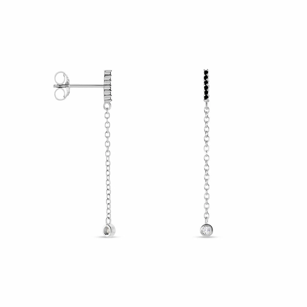Boucles D’oreilles Pendantes Argent 925/1000 Barettes Micro Setting Oxydes De Zirconium Noir Et Blanc