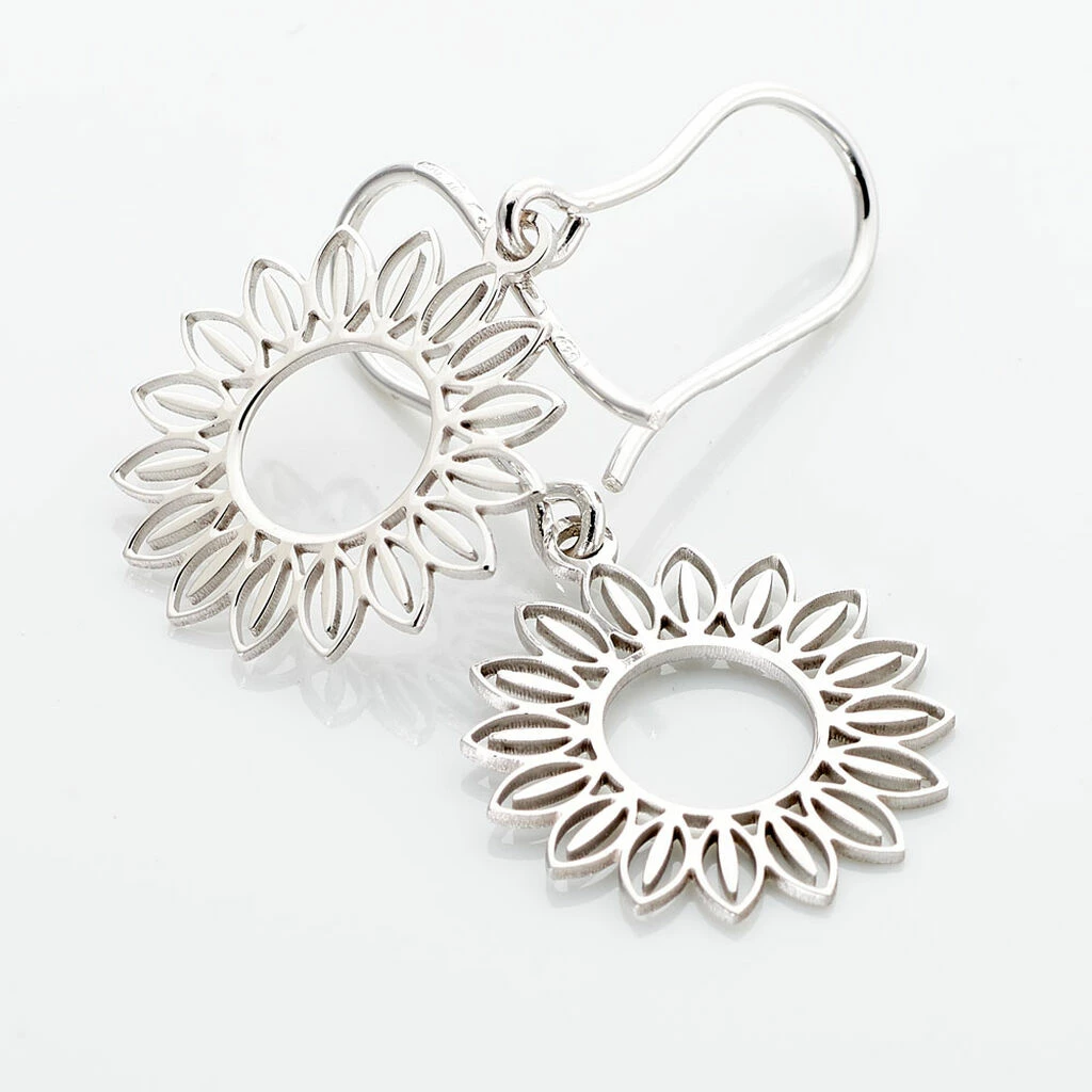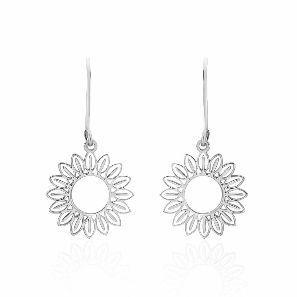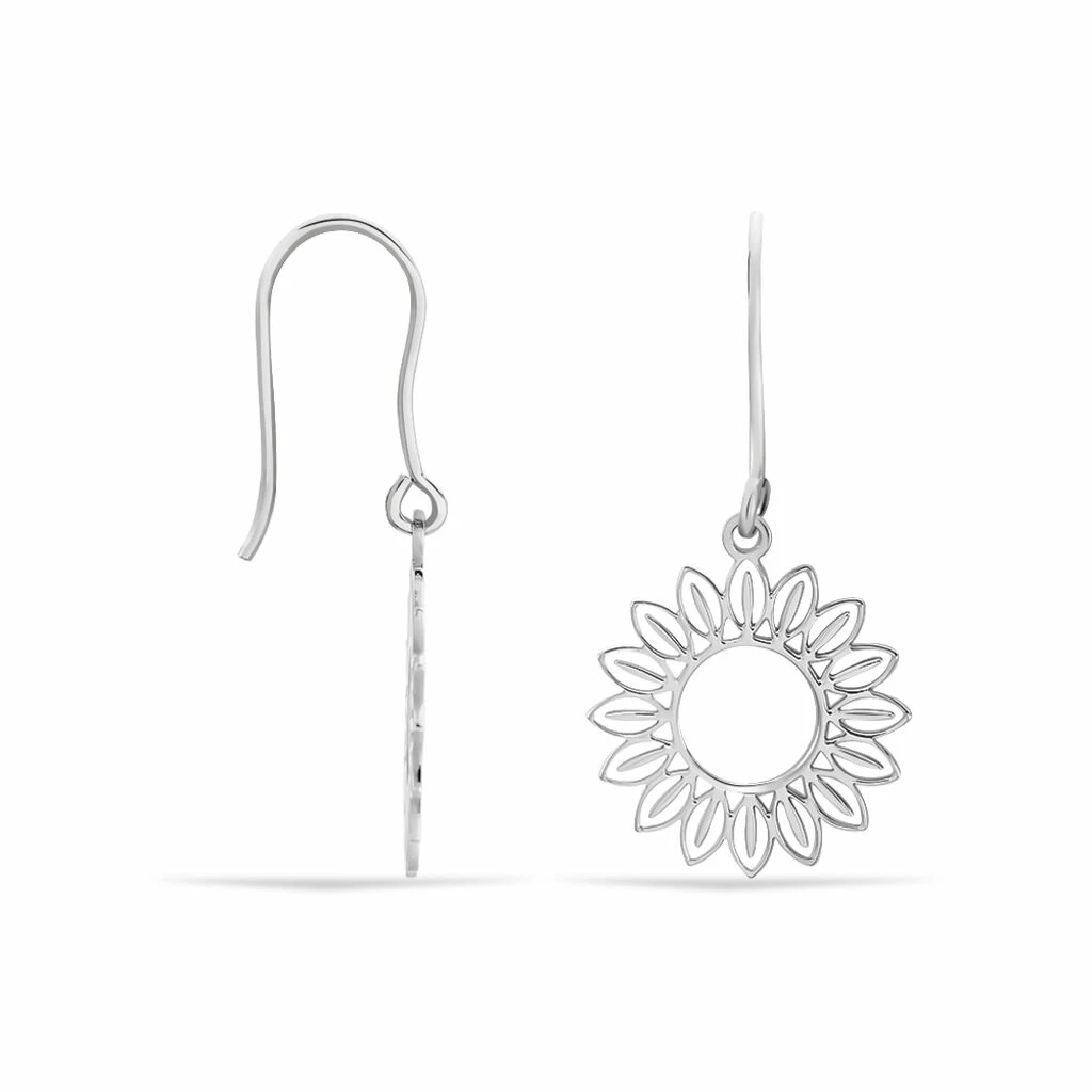 Boucles D’oreilles Pendantes Argent Blanc 925/1000 Soleil Ajoure