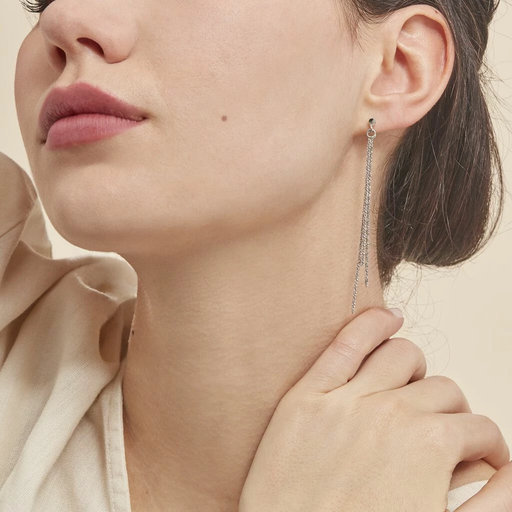 Boucles D’oreilles Pendantes Argent Blanc 925/1000 Triple Mailles Fantaisies