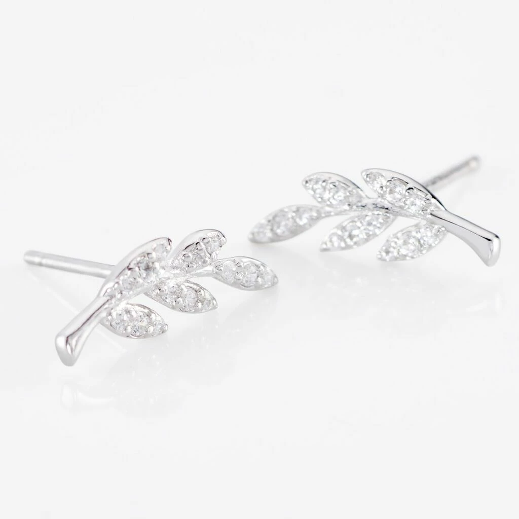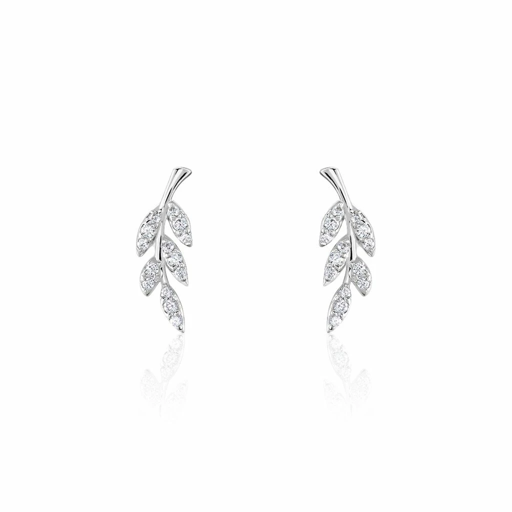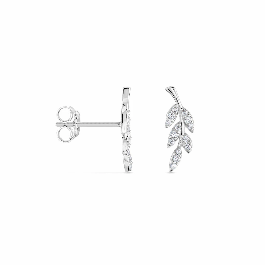 Boucles D’oreilles Puces Argent 925/1000 Feuilles Pavées Oxydes De Zirconium