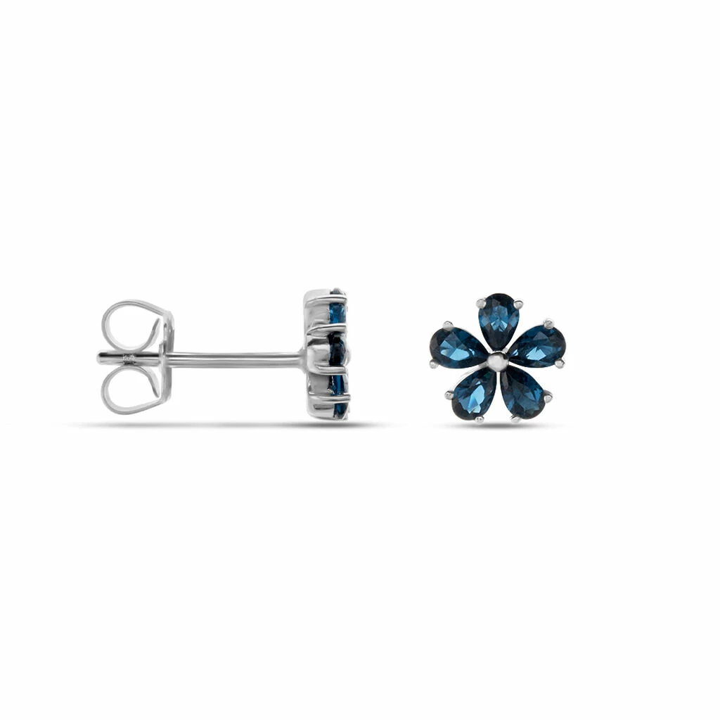 Boucles D’oreilles Puces Argent Blanc 925/1000 Fleurs Serti Griffes Oxydes De Zirconium Bleus