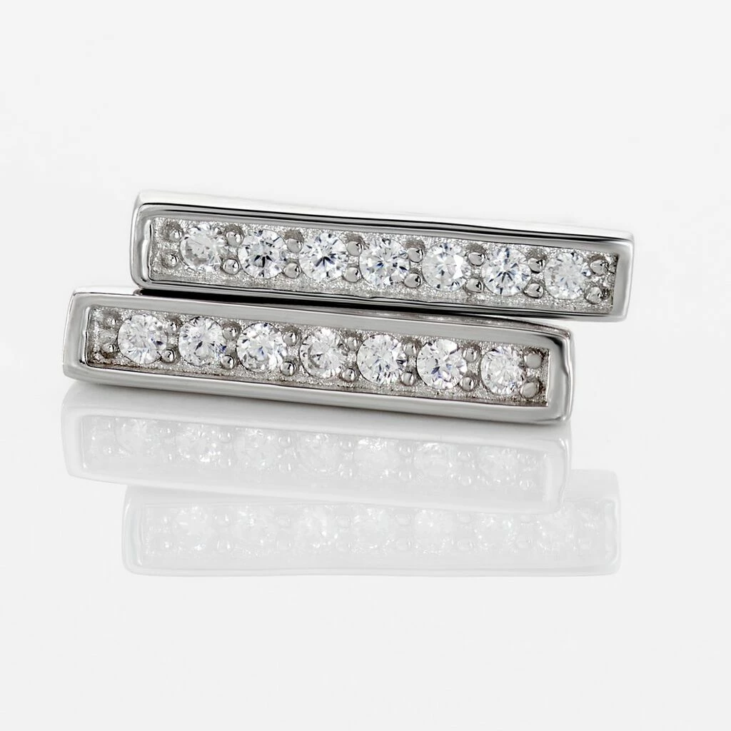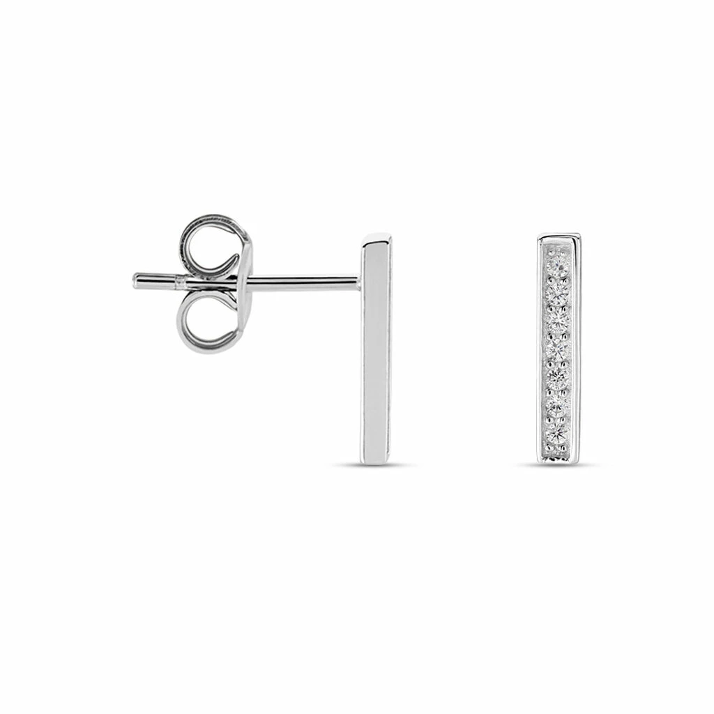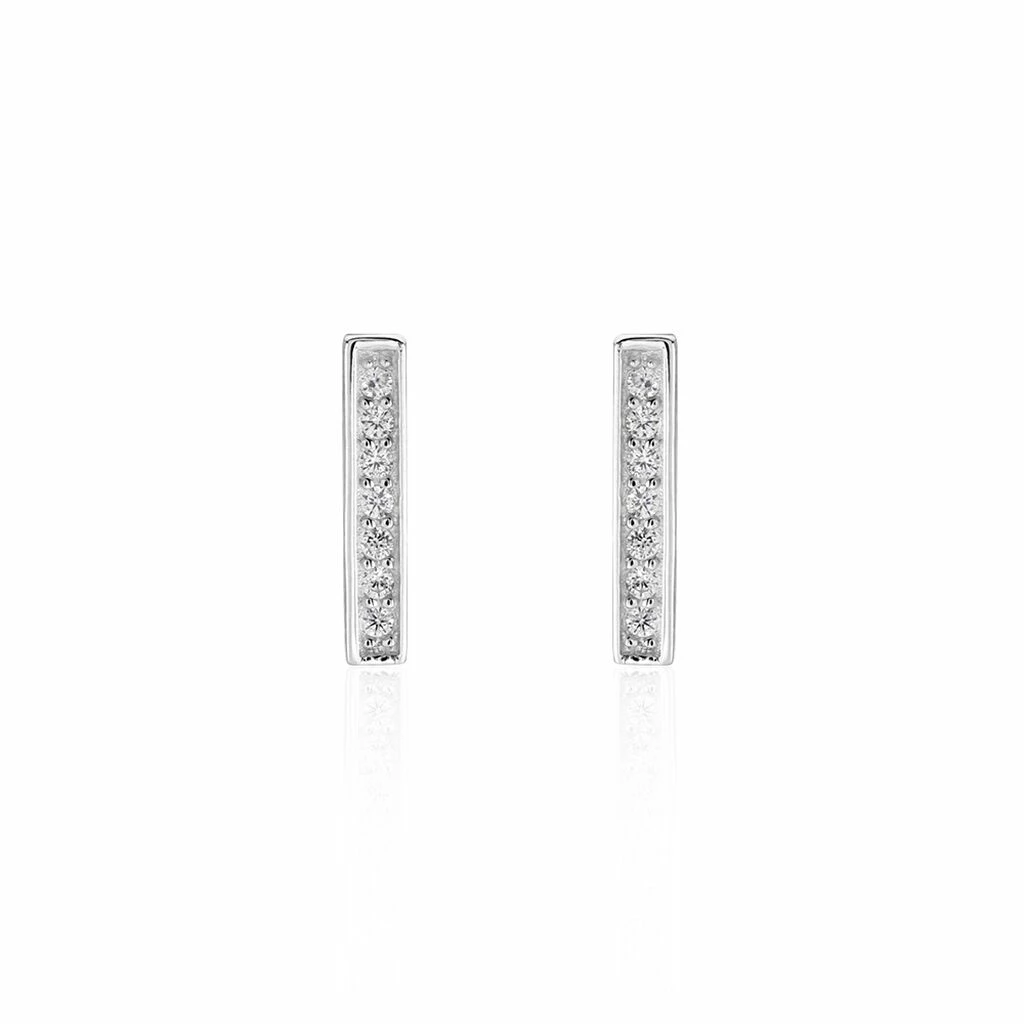Boucles D’oreilles Puces Argent Blanc 925/1000 Barrette Oxydes De Zirconium Sertis Pavage