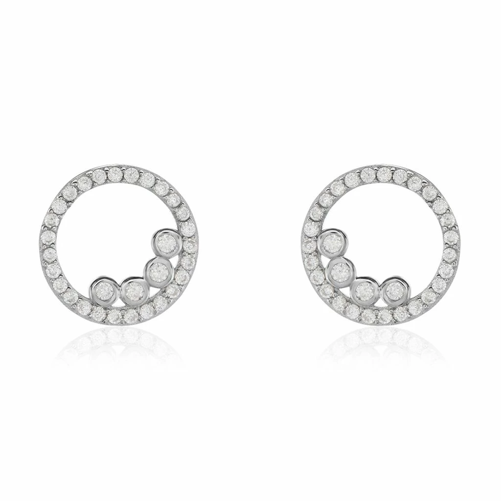 Boucles D’oreilles Puces Argent Blanc 925/1000 Cerles Pavage Et Serti Clos Oxydes De Zirconium