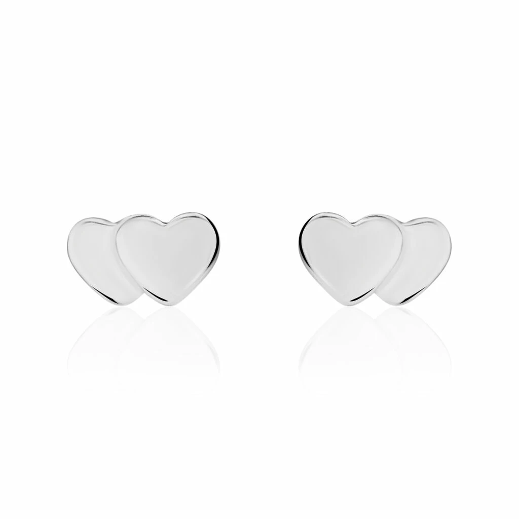 Boucles D’oreilles Puces Argent Blanc 925/1000 Double Cœurs