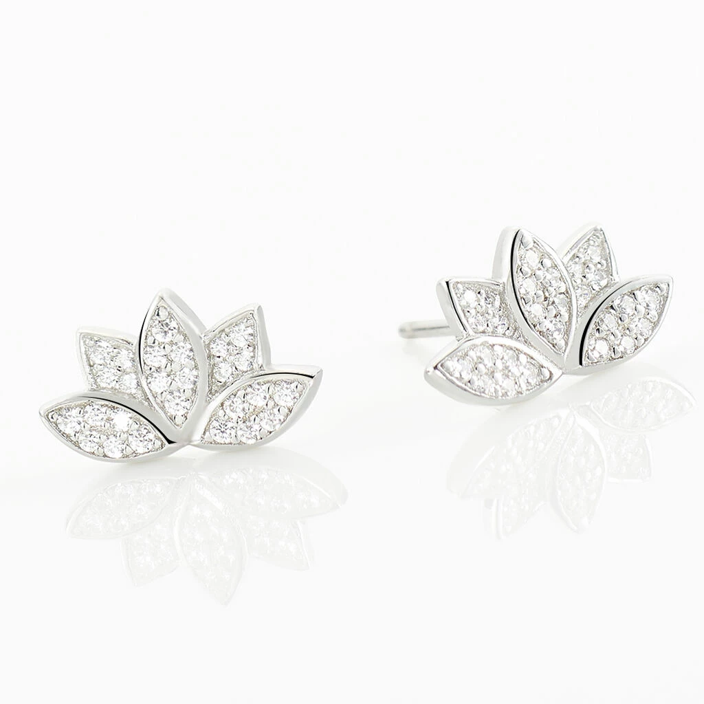 Boucles D’oreilles Argent 925/1000 Puces Fleurs De Lotus Oxyde