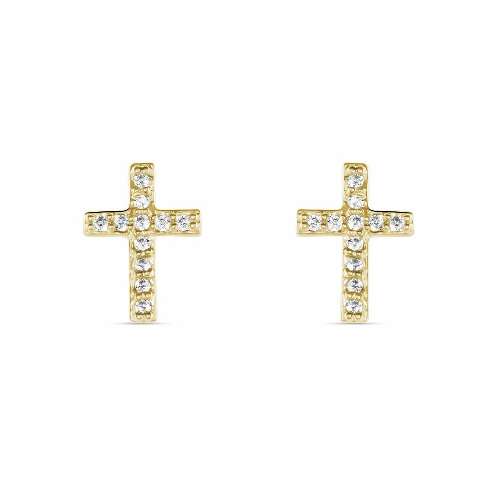 Boucles D’oreilles Puces Plaqué Or Jaune Croix Pavages Oxydes De Zirconium