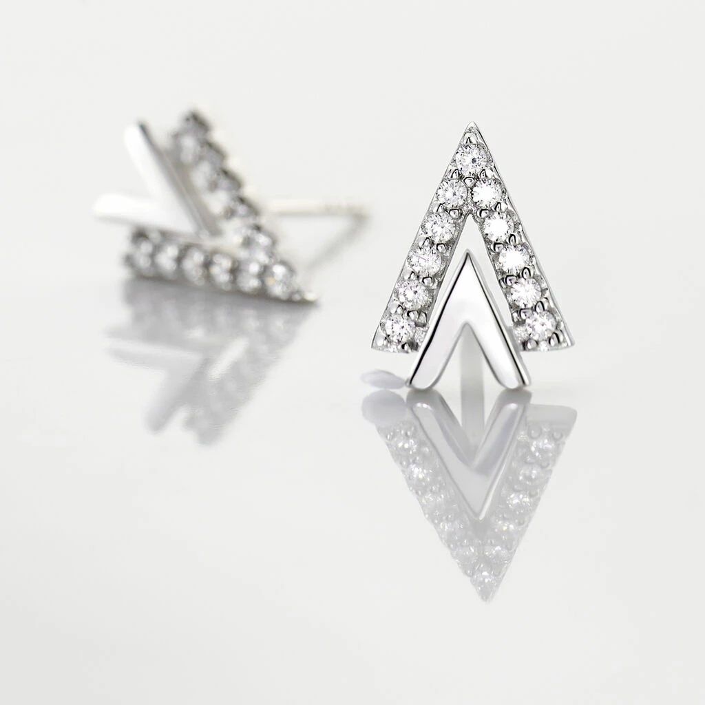 Boucles D’oreilles Puces Argent Blanc 925/1000 Formes V Double Pavage Oxydes De Zirconium
