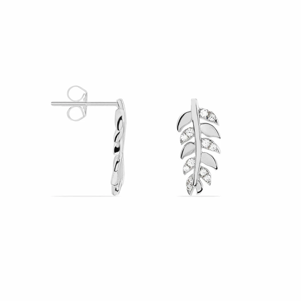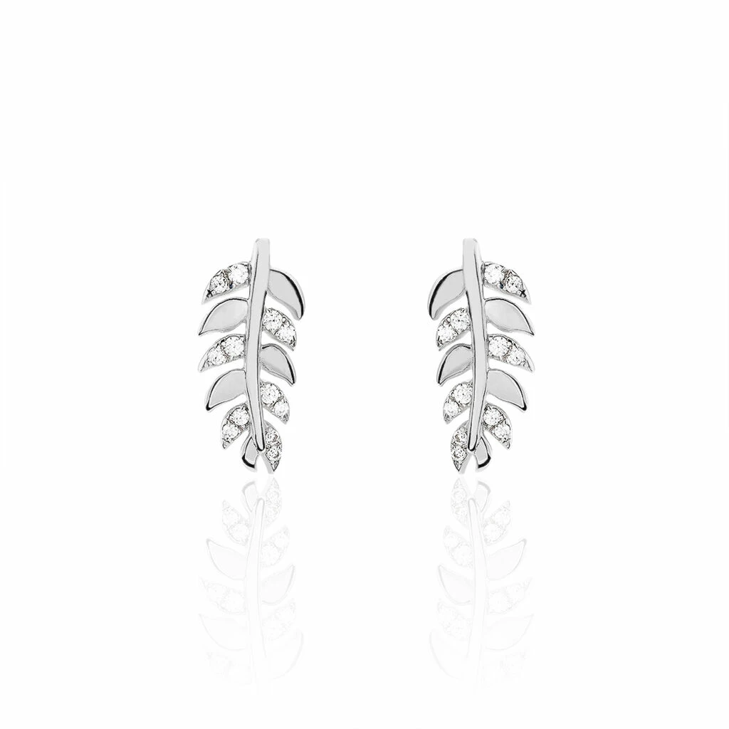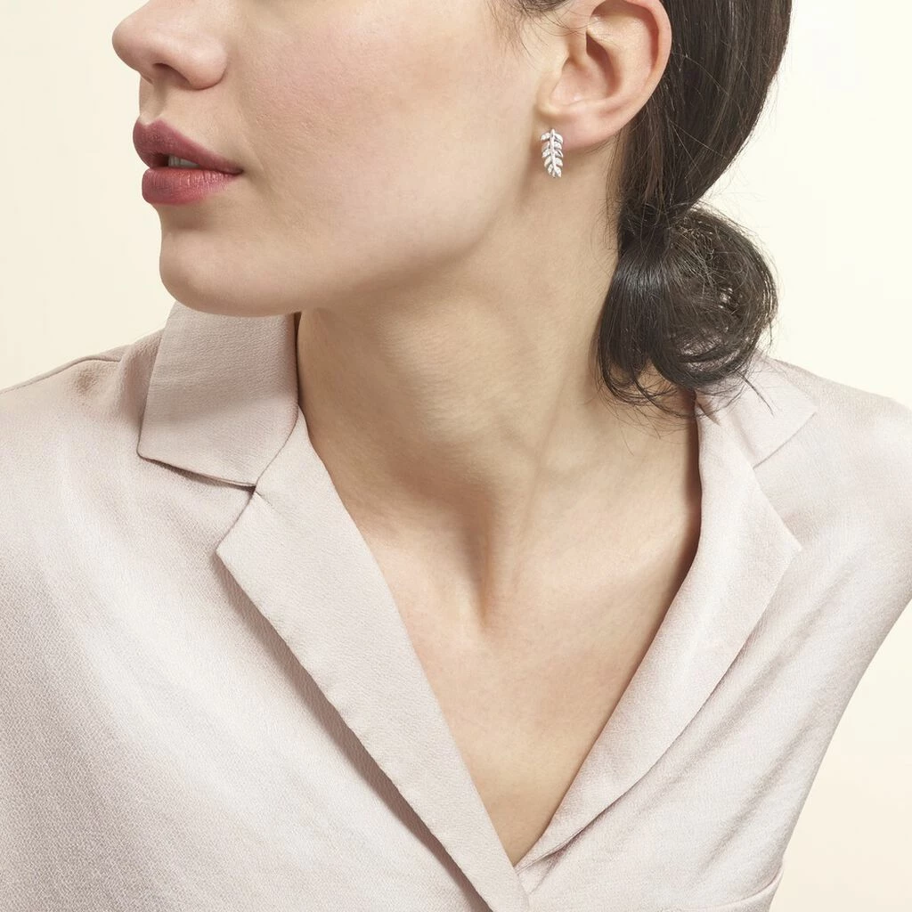 Boucles D’oreilles Argent Blanc 925/1000 Formes Feuilles Oxydes De Zirconium