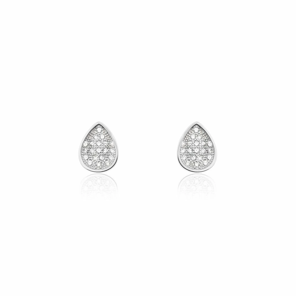 Boucles D’oreilles Puces Argent 925/1000 Goutte Oxyde De Zirconium