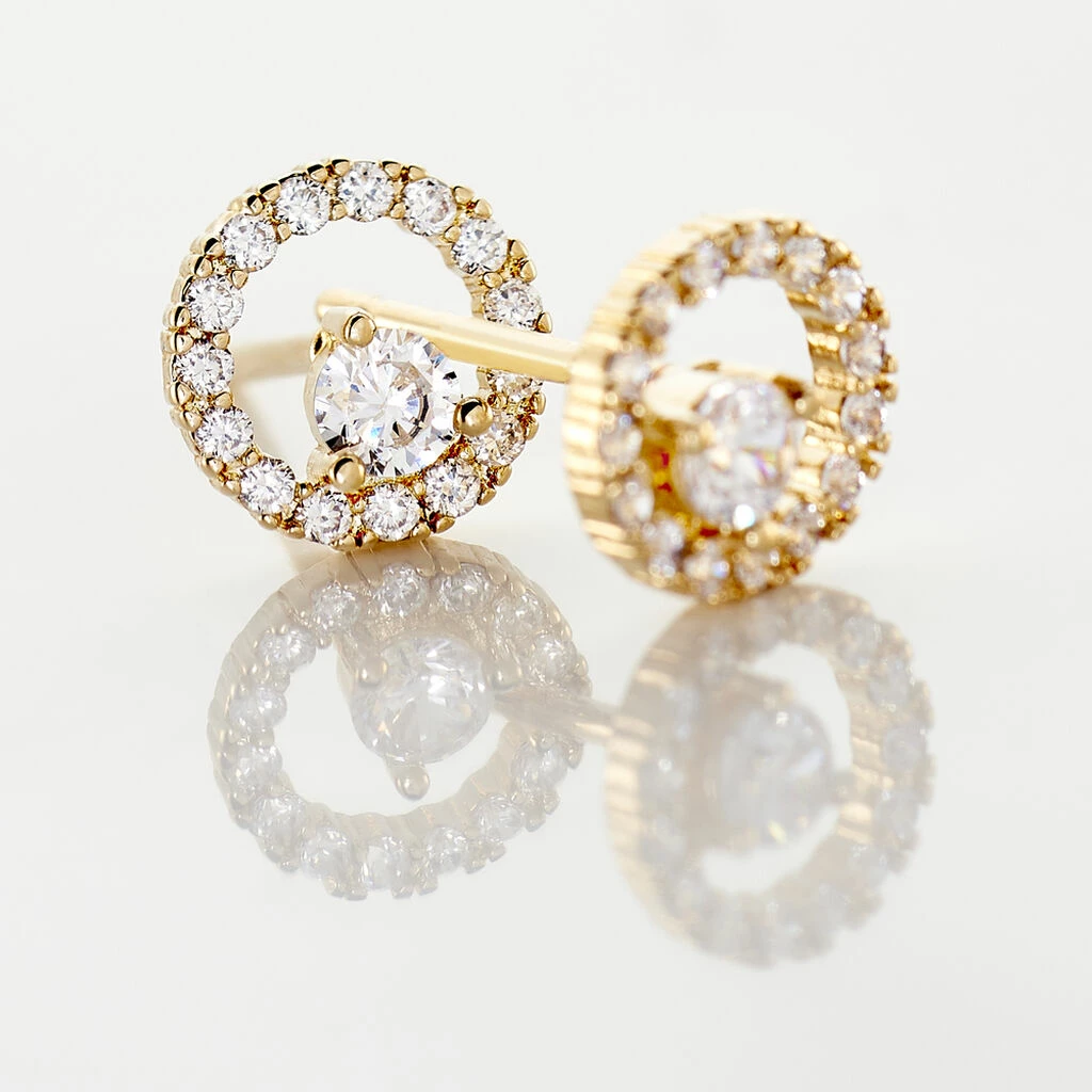 Boucles D’oreilles Plaqué Or Jaune Oxyde Central Cercle Pave Oxydes De Zirconium