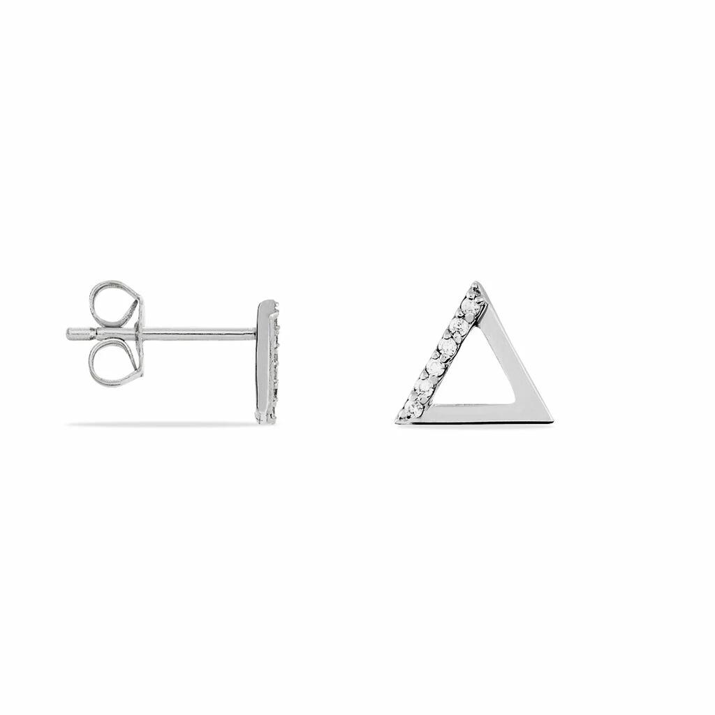 Boucles D’oreilles Argent Blanc 925/1000 Triangles Ajoures Semi Paves Oxydes De Zirconium