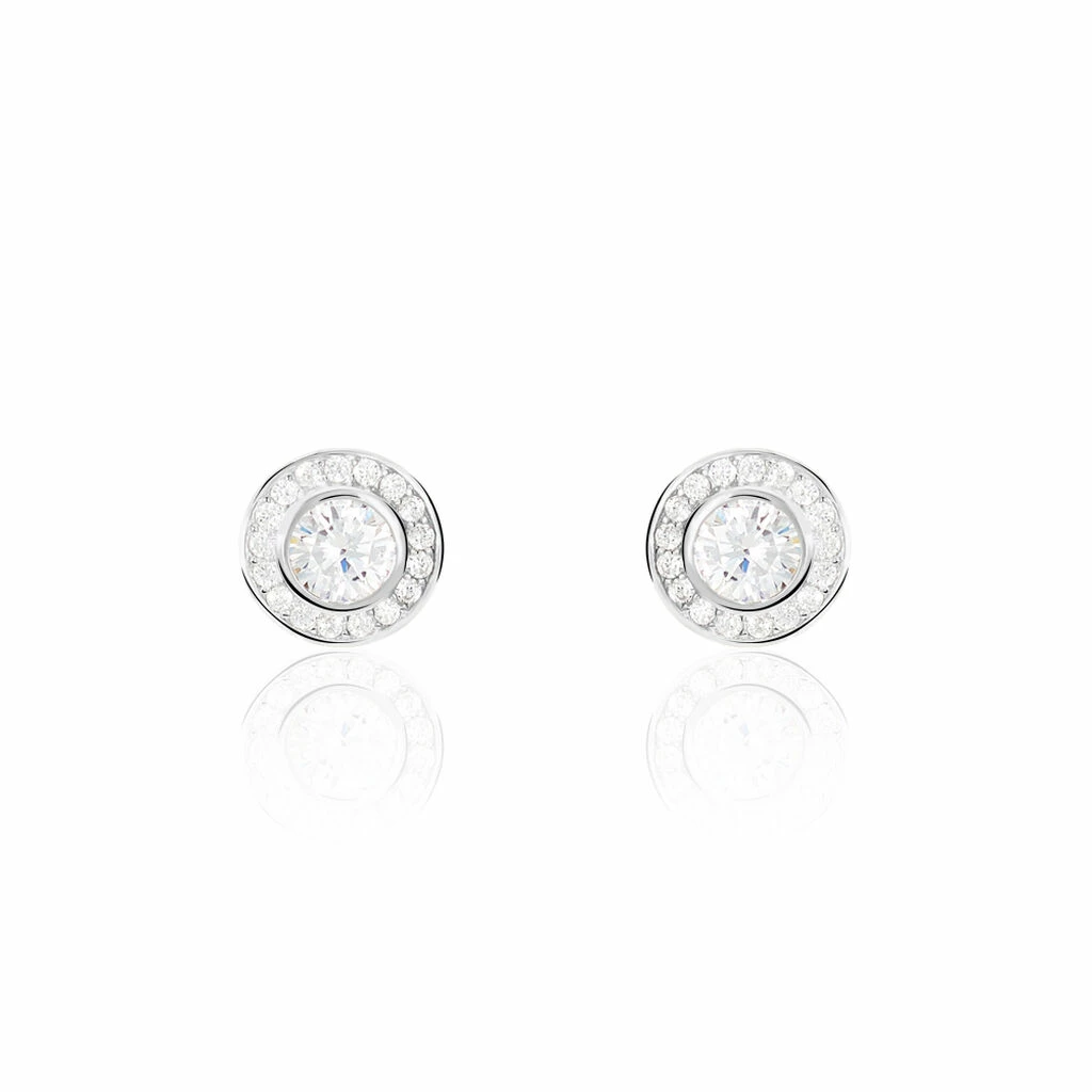 Boucles D’oreilles Argent Blanc 925/1000 Formes Rondes Oxydes De Zirconium