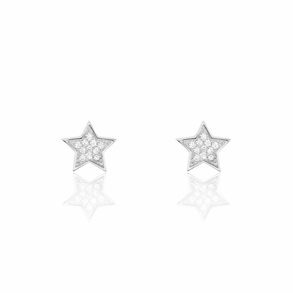 Boucles D’oreilles Puces Argent 925/1000 Etoile Oxyde De Zirconium
