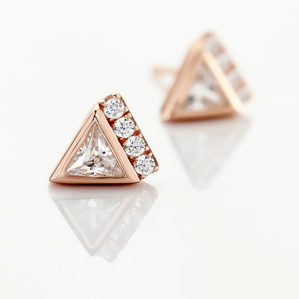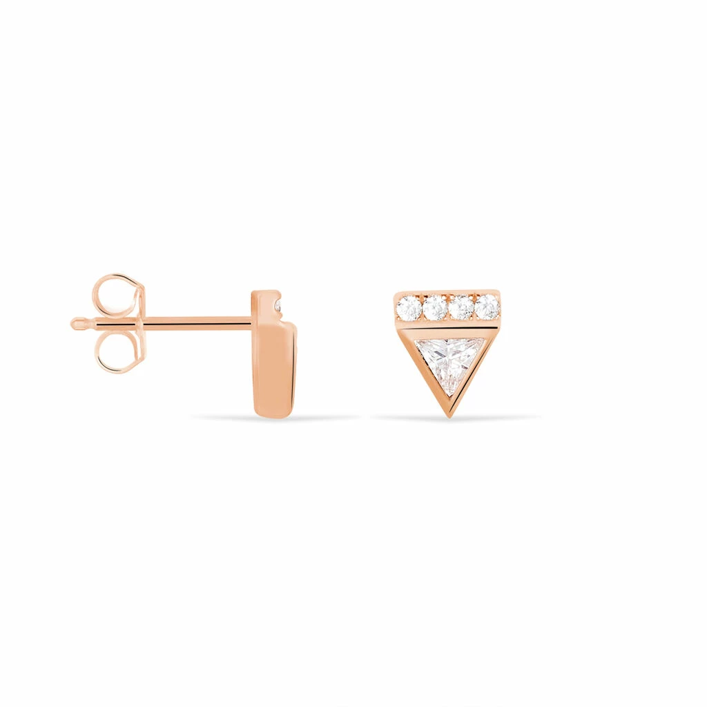 Boucles D’oreilles Puces Argent Rose 925/1000 Motifs Triangles Oxyde