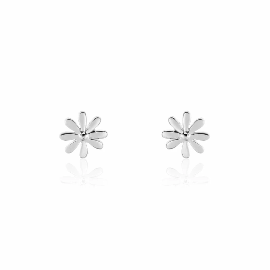 Boucles D’oreilles Puces Argent Blanc 925/1000 Fleurs