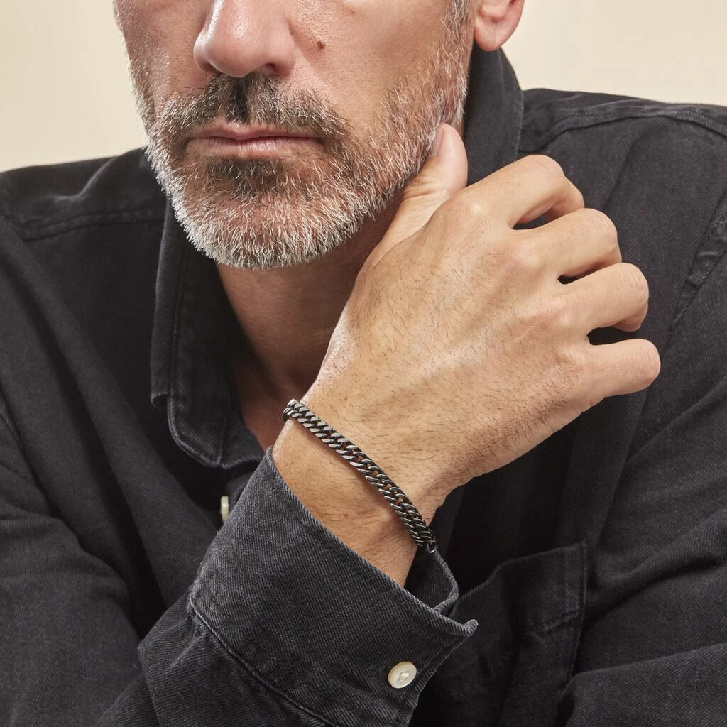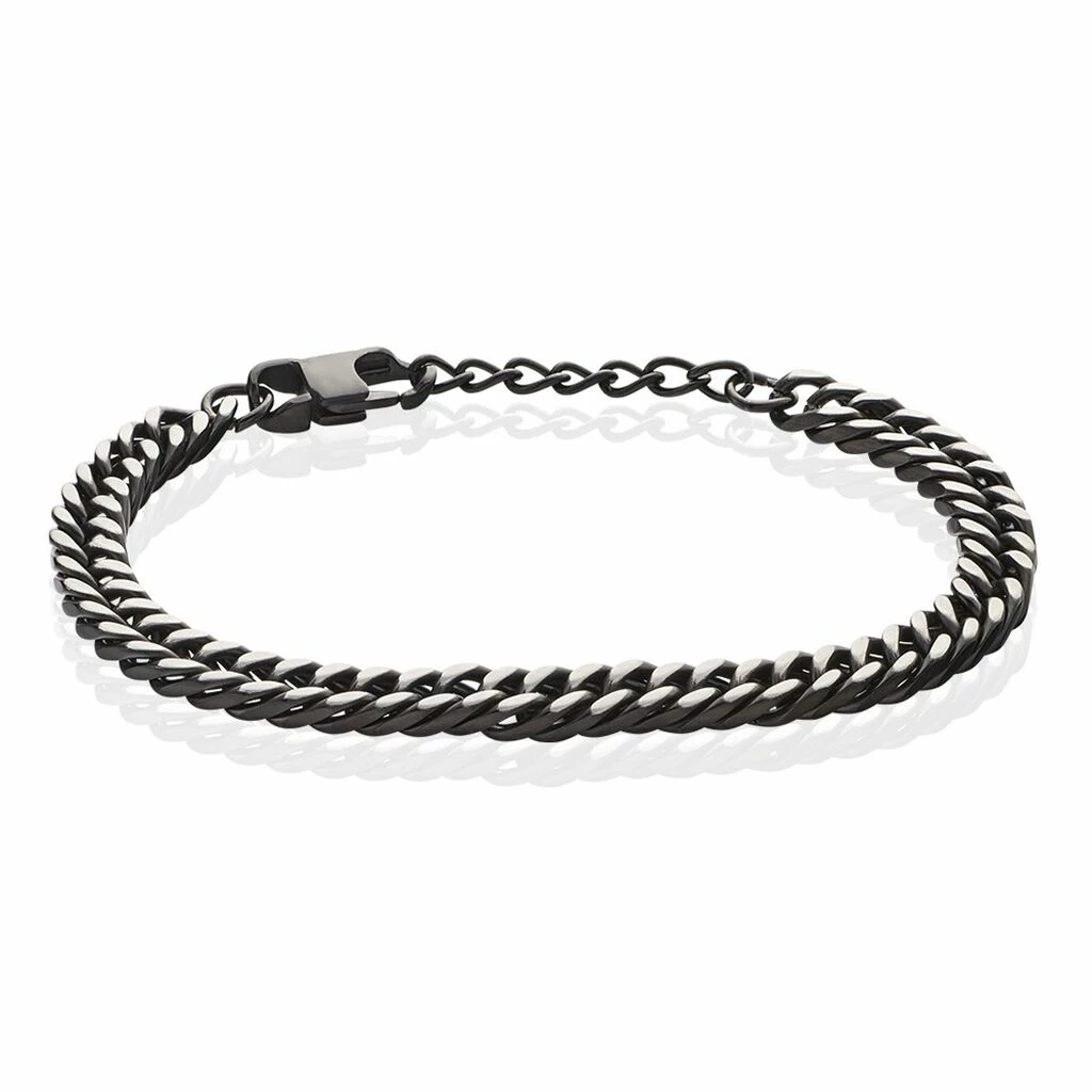 Bracelet Acier Noir Et Gris Maille Gourmette Serree 22cm