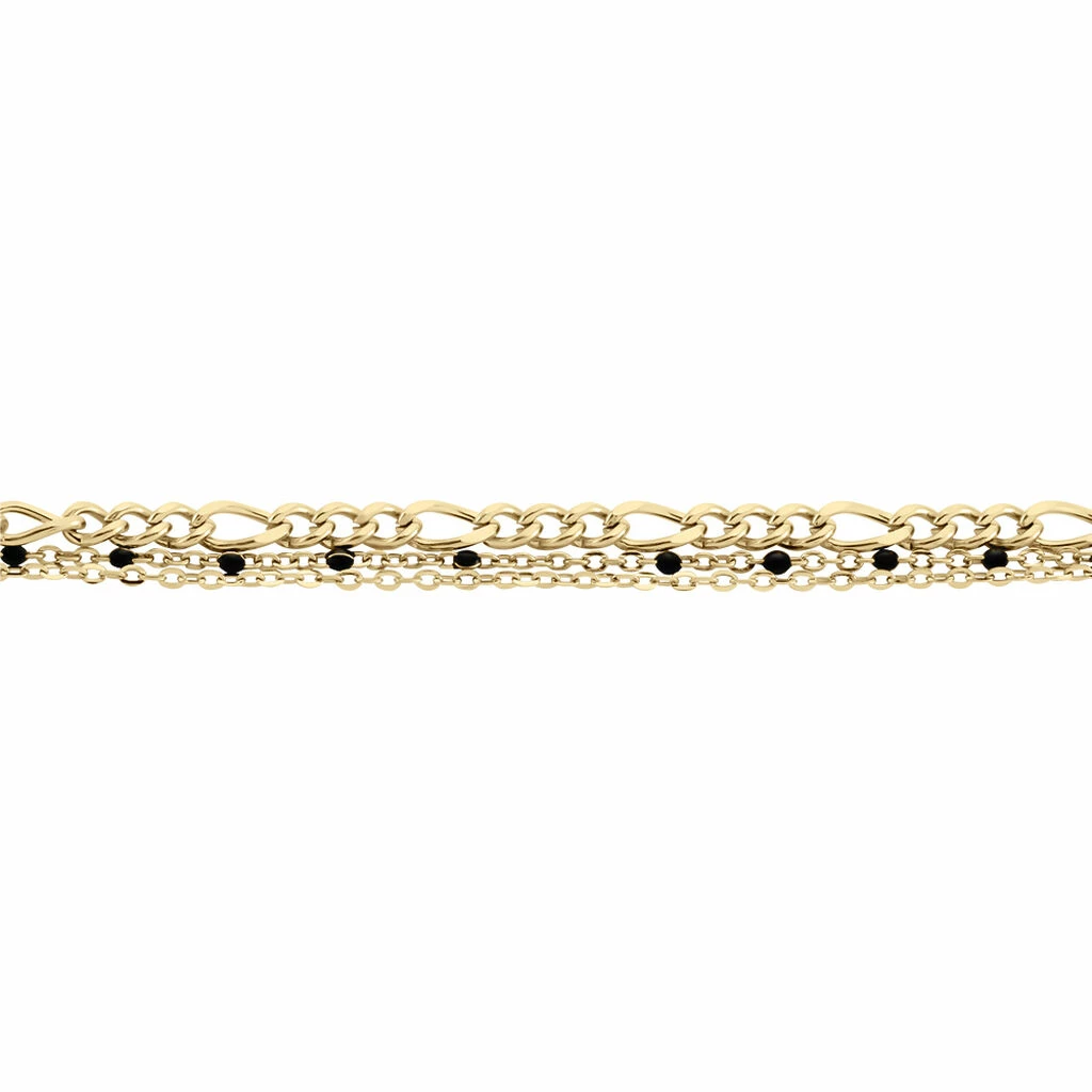 Bracelet Acier Doré Email Noir Triple Chaînes Mailles Alternée 1/3 Et Fantaisies 19cm