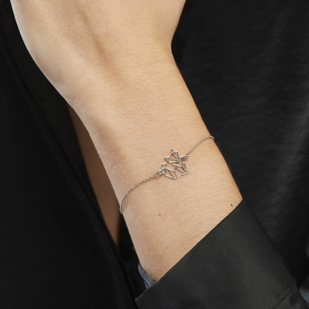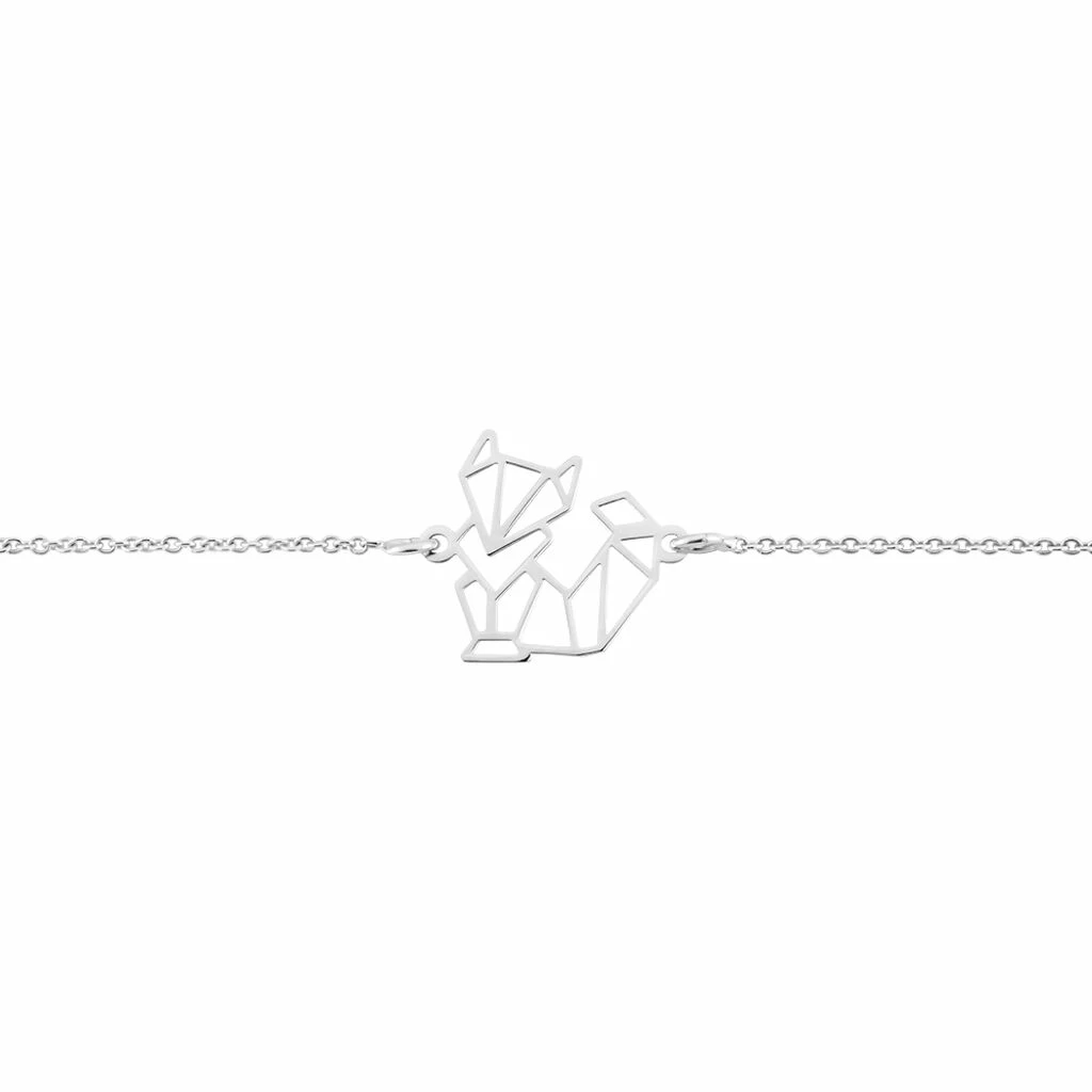 Bracelet Argent Blanc 925/1000 Renard Origami Chaine Jaseron 16cm