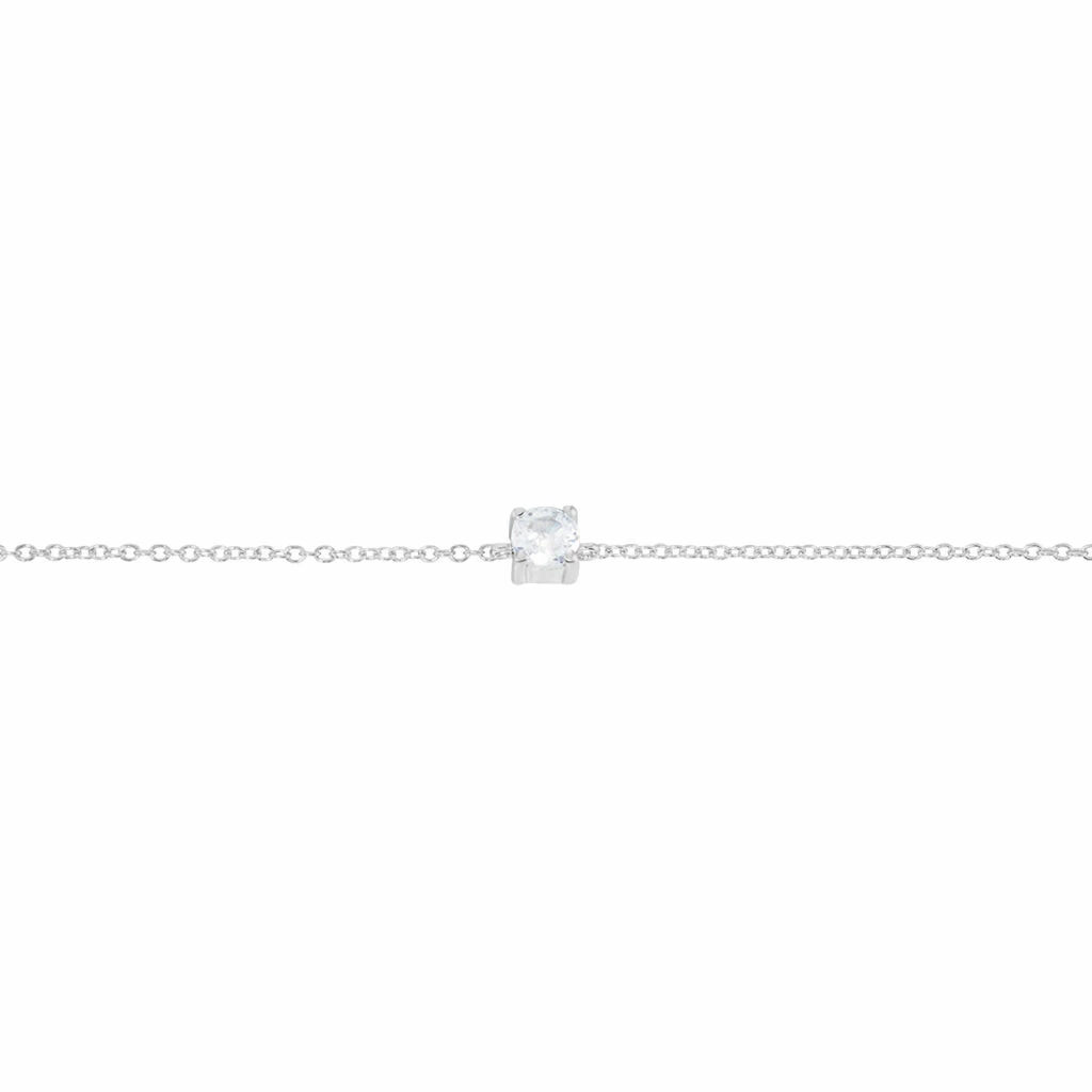 Bracelet Petite Taille Argent Blanc 925/1000 Solitaire 4 Griffes Oxyde De Zirconium 1mm Maille Forcat 16cm