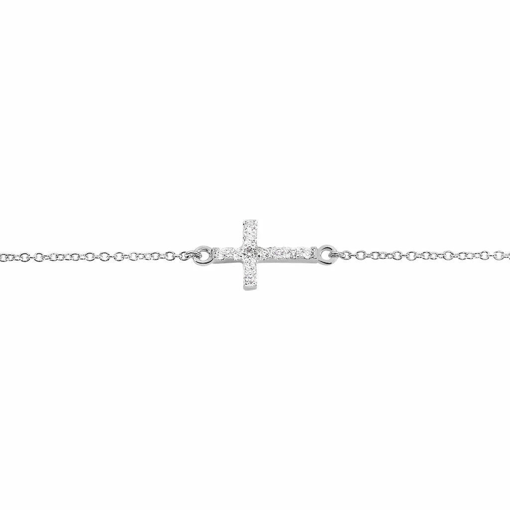 Bracelet Argent Blanc 925/1000 Croix Oxydes De Zirconium 19cm