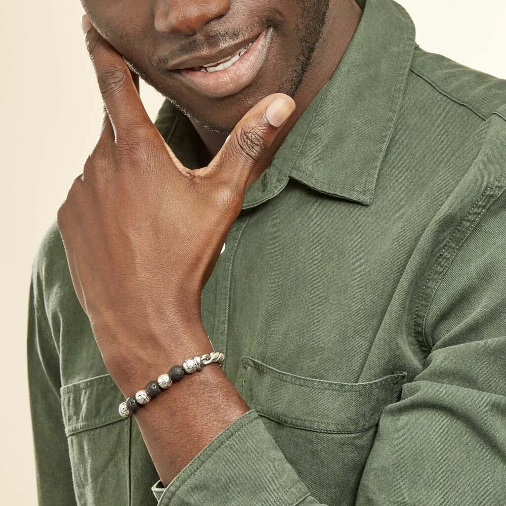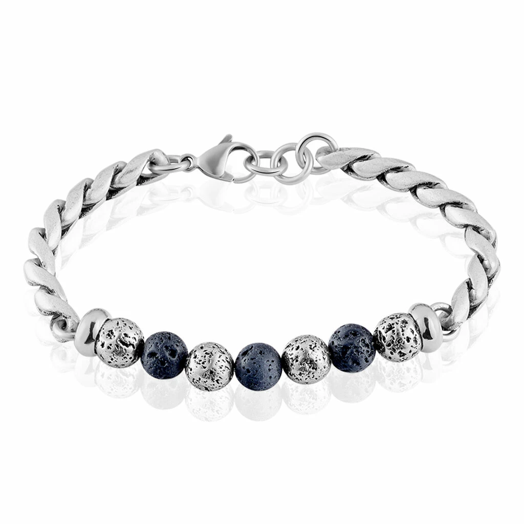 Bracelet Gulustan Acier Gris Vieilli Pierres De Lave